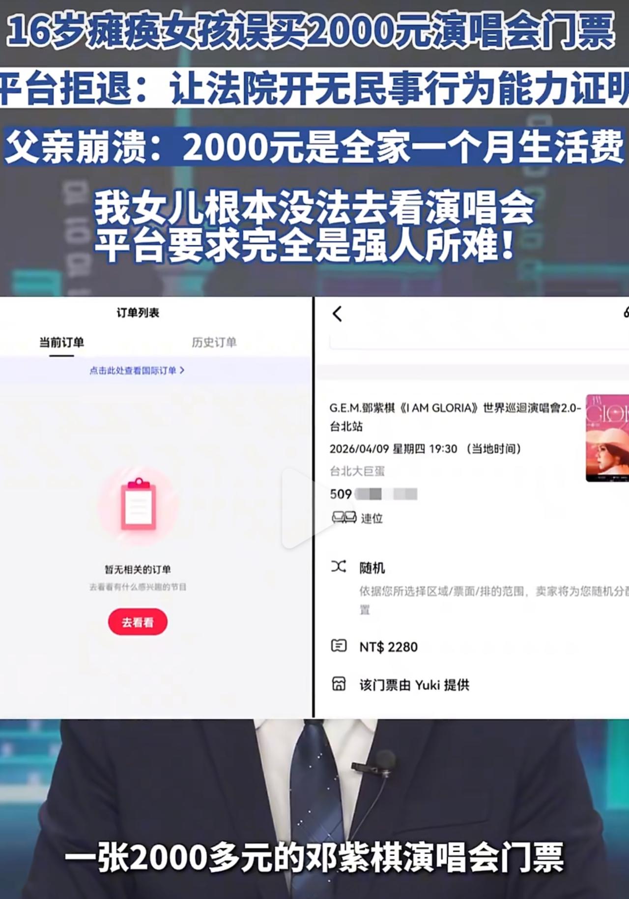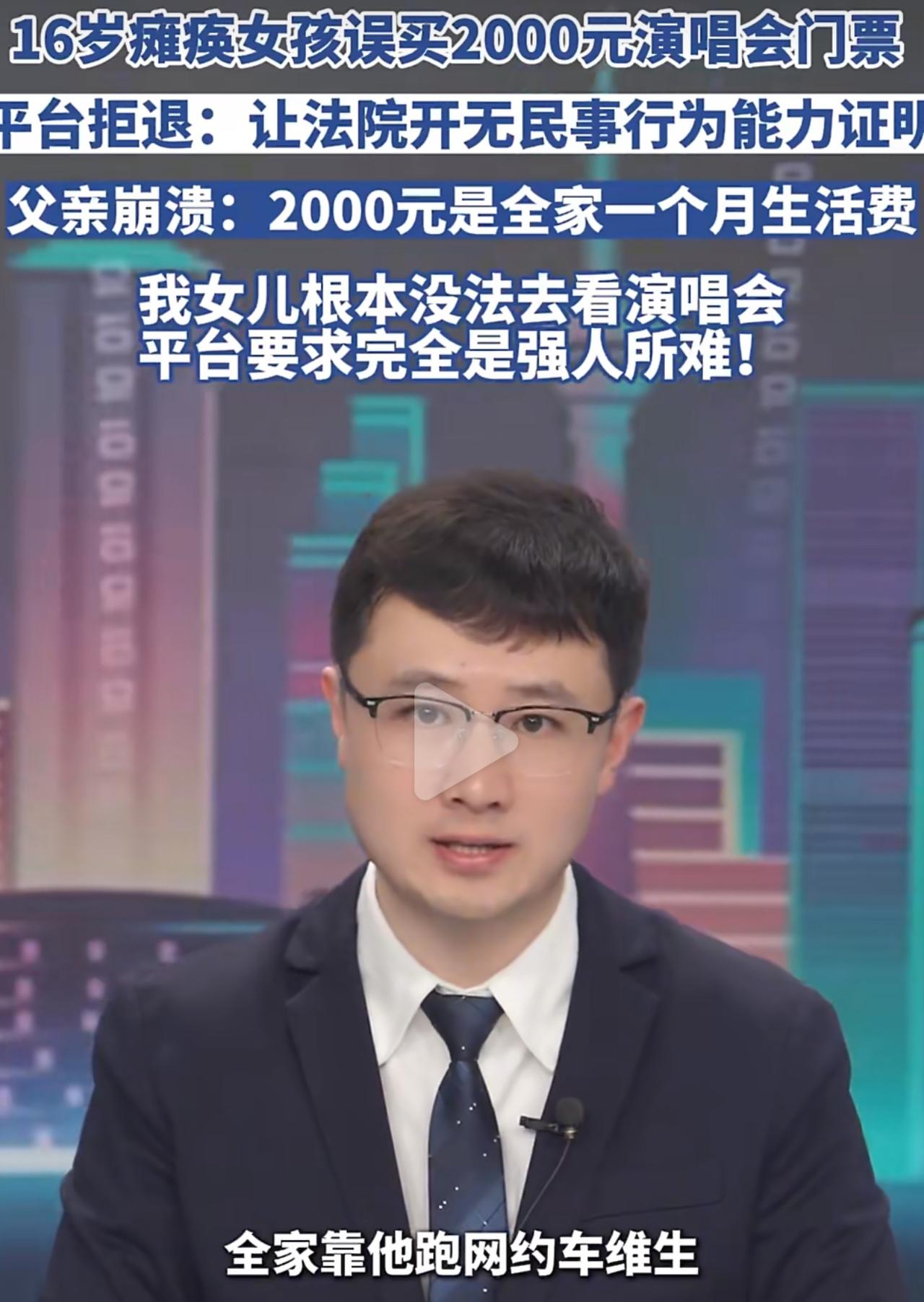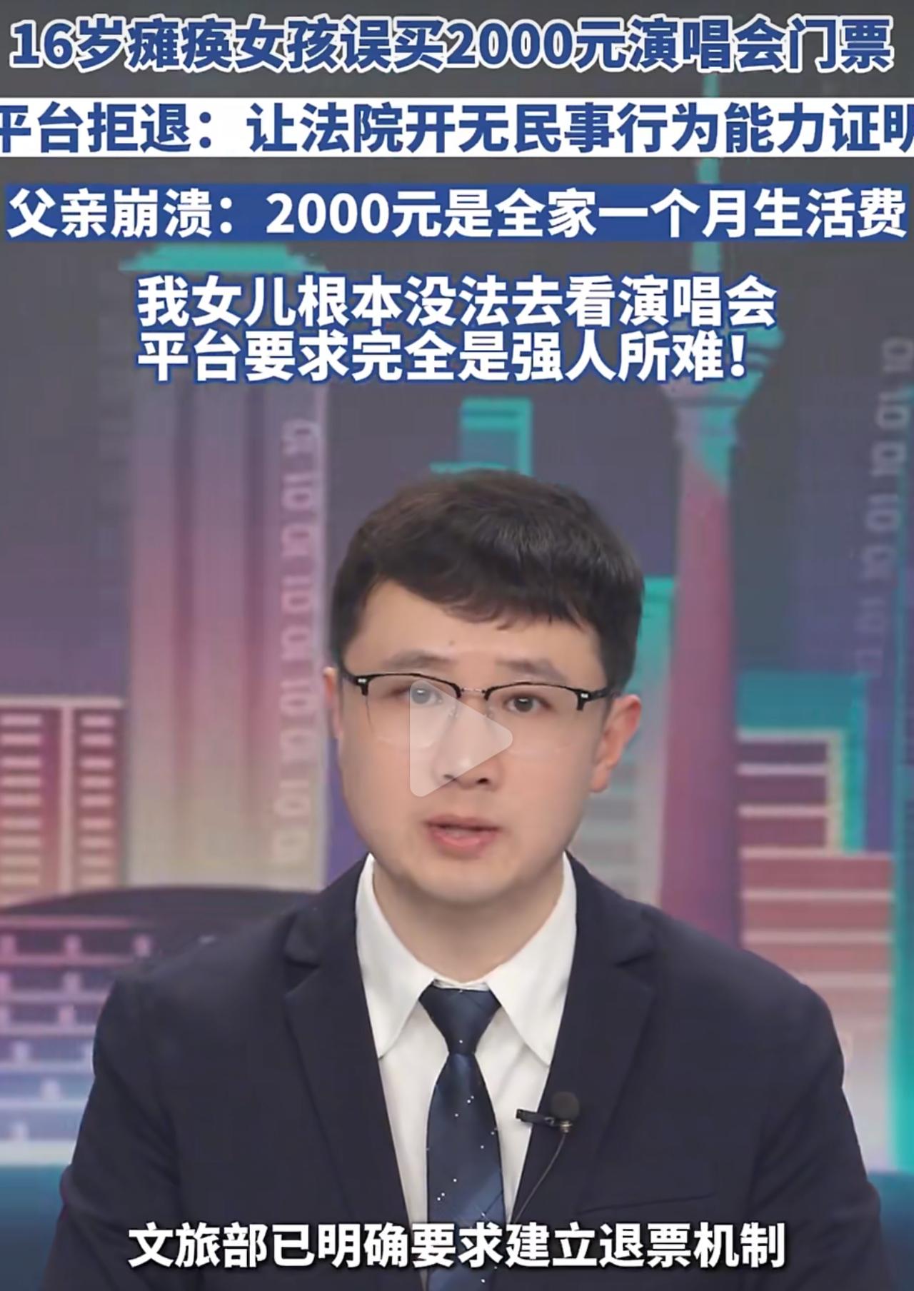 法律是死的,但人得活啊。守规则没错,但能不能对身处困境的人多一点体谅?别让本就难的家庭,再受这种不该有的委屈。瘫痪女孩误买邓紫棋演唱会票平台拒退 瘫痪 央视曝光票务平台退款难乱象