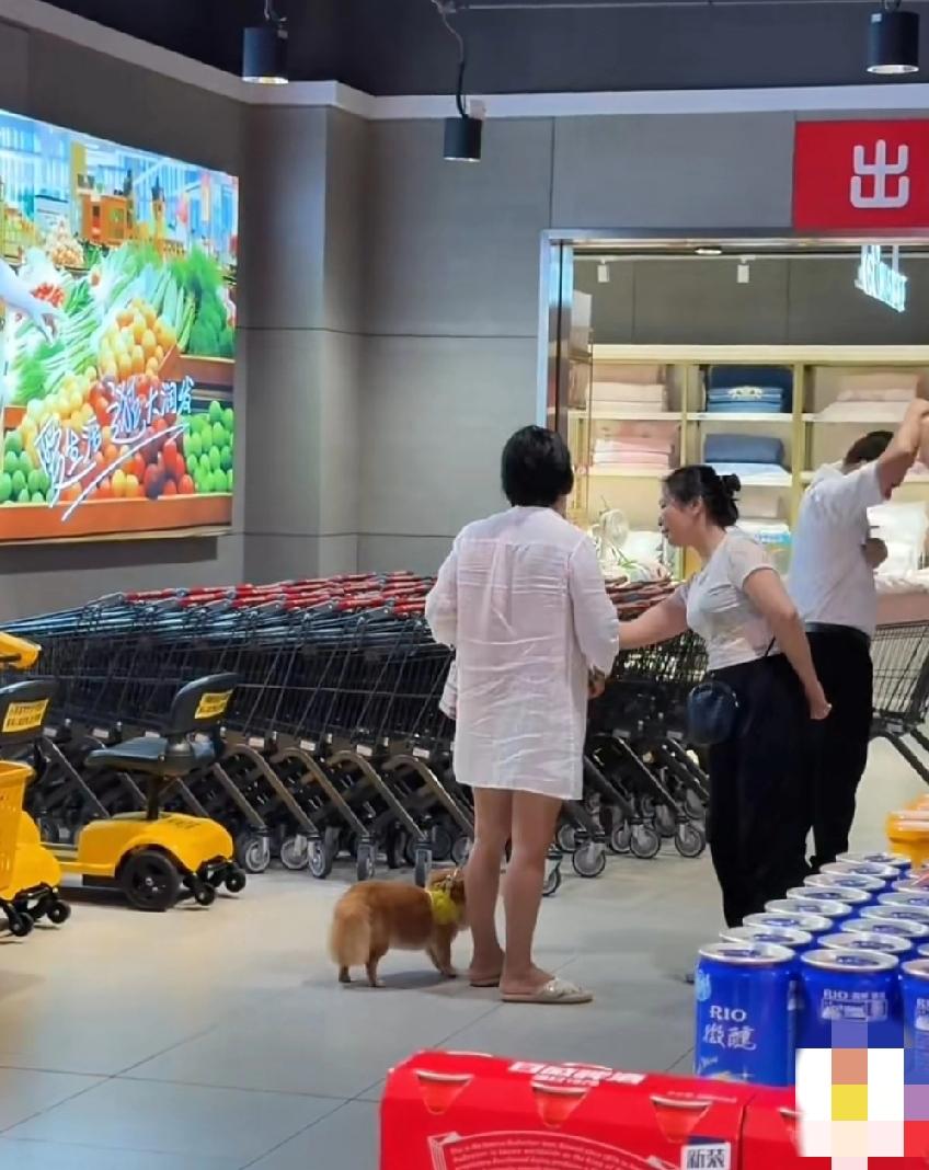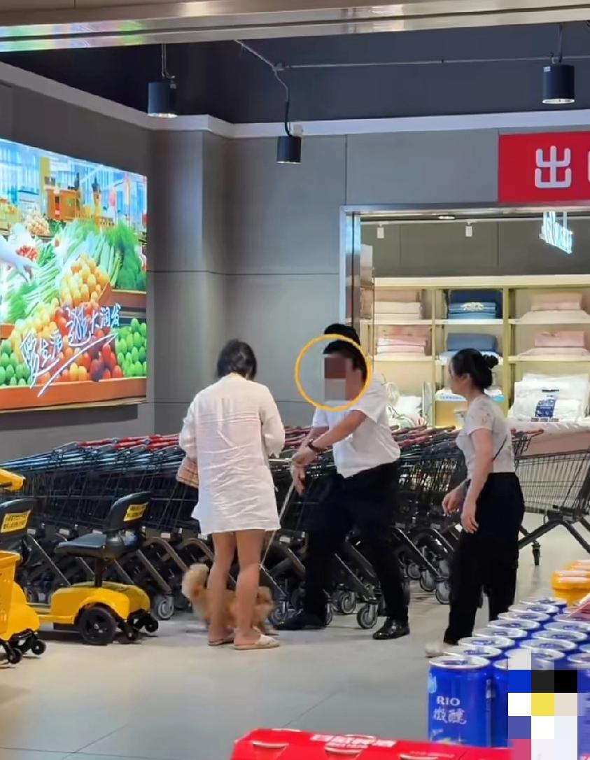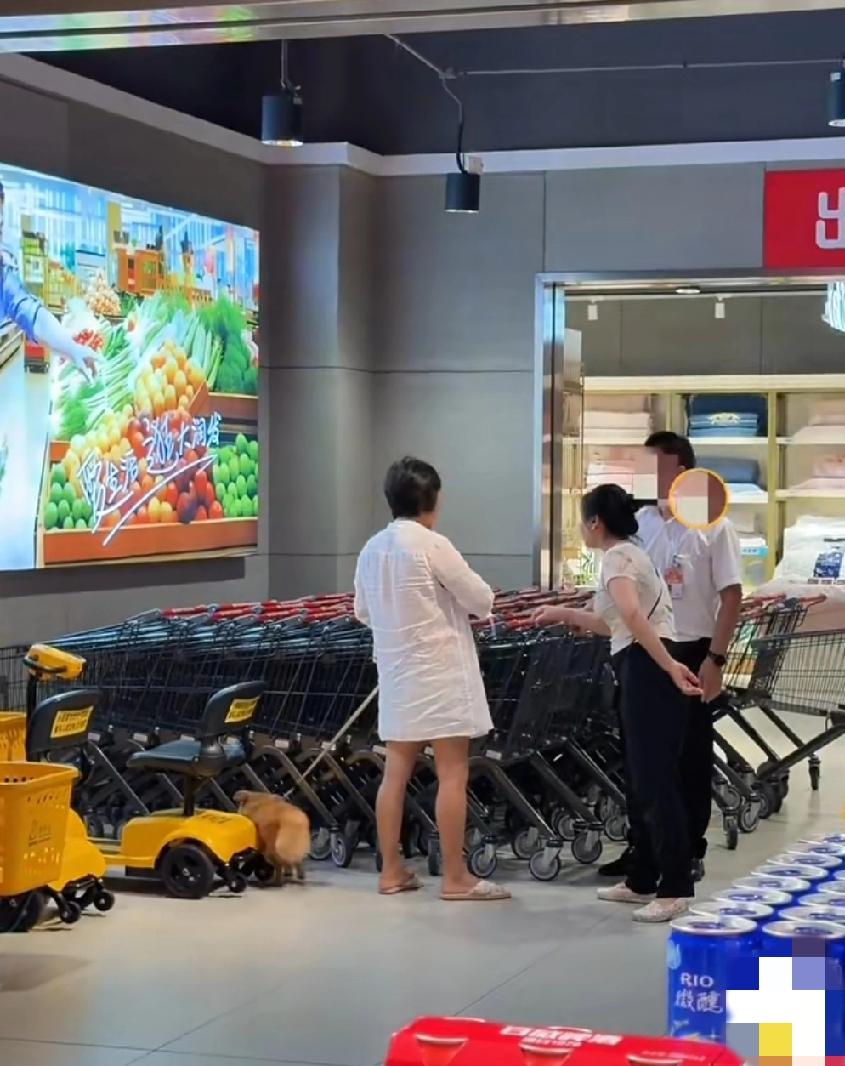 海南三亚,这个女的非要把小狗绑在购物车上推着走,工作人员解释说会影响到别人且不安全,并告知超市有专门的宠物寄放处,女子就是不答应,双方就这么僵持着……