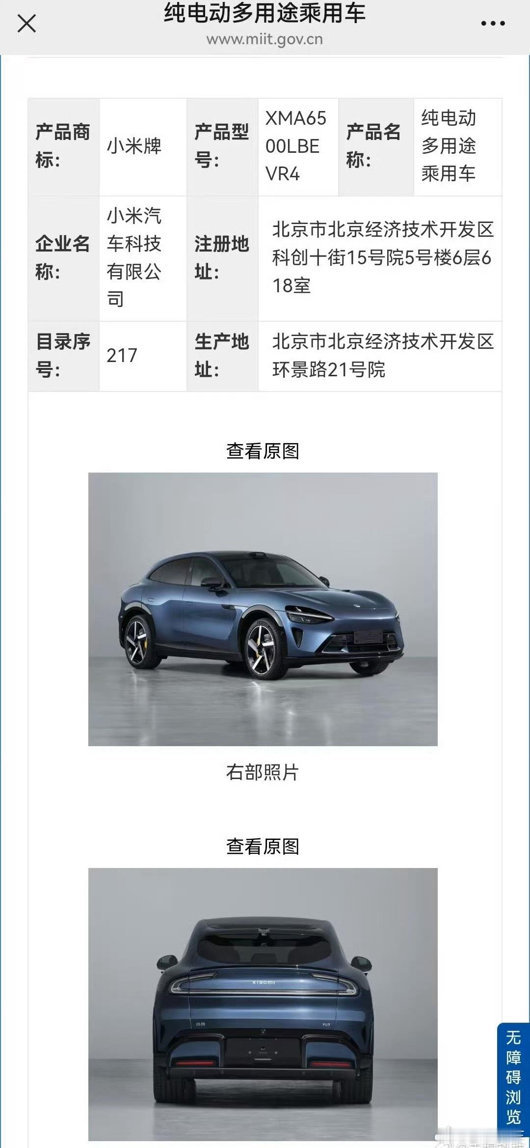 小米YU7新版本?工信部新公布了小米YU7的新版本,这个应该就是之前所说的入门版