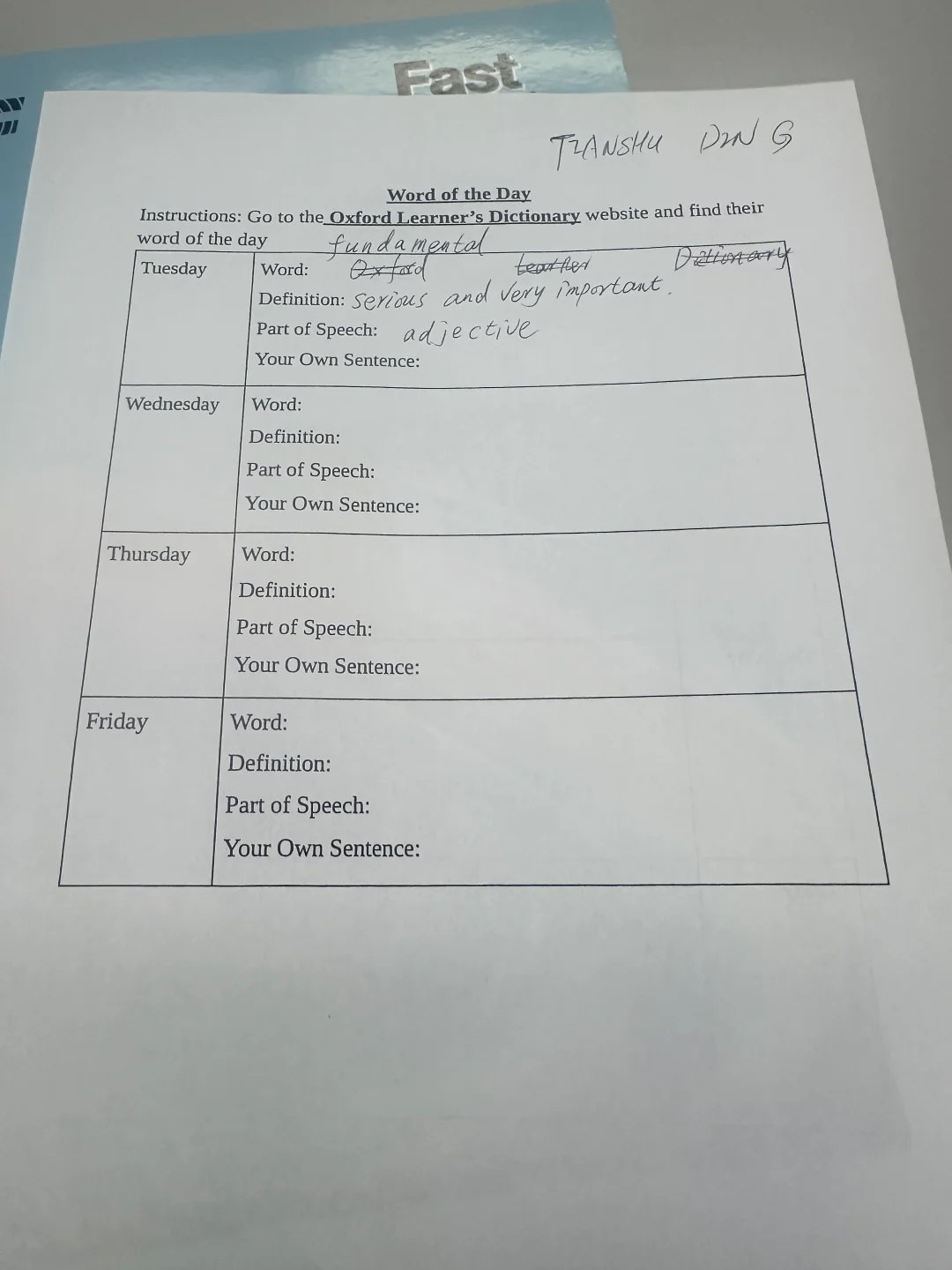 • 发了学习纸,让我们打开牛津词典网站,每天学一个牛津核心词