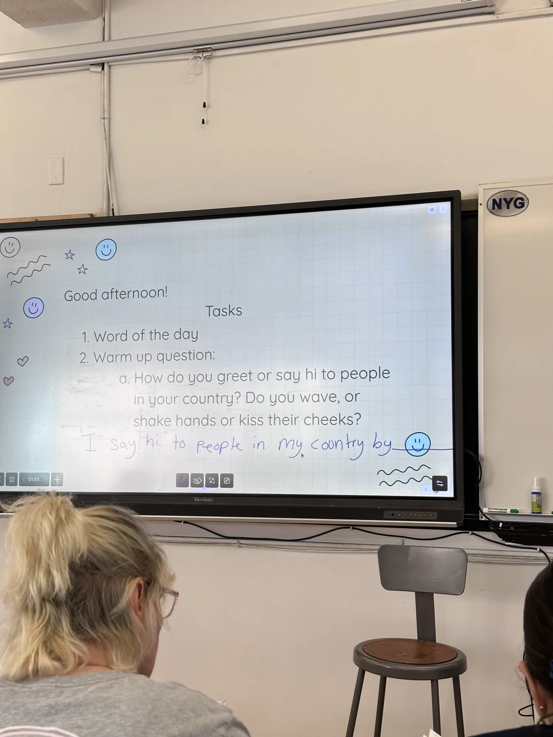 今天来了好多新生,也新发了A2.1课本,感觉今天才算真正进入正式上课节奏。老师特别好,教学方式很现代化,互动超多: