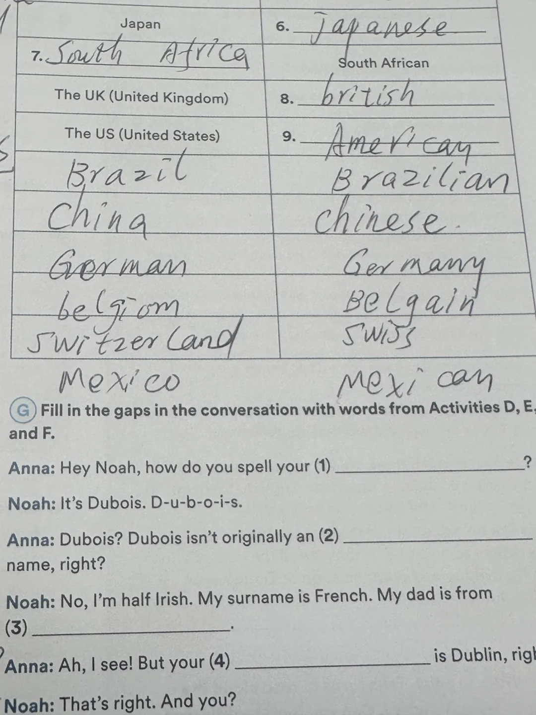接着做练习:填写国家和对应的国籍,一点点夯实基础。
