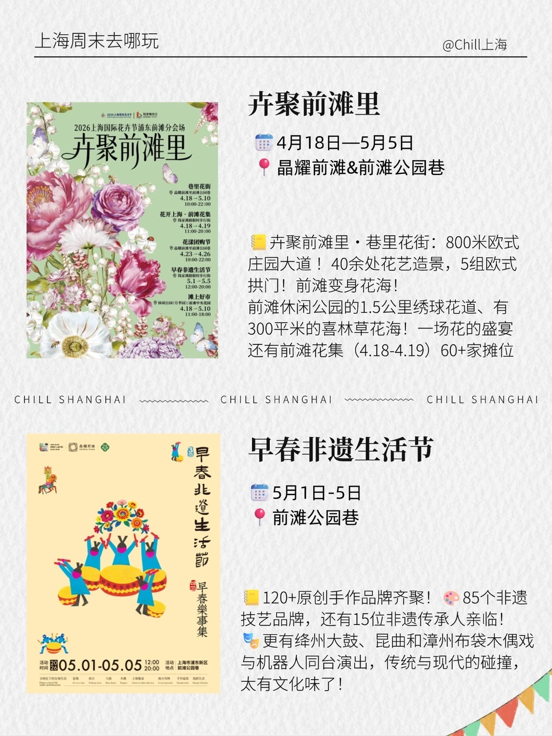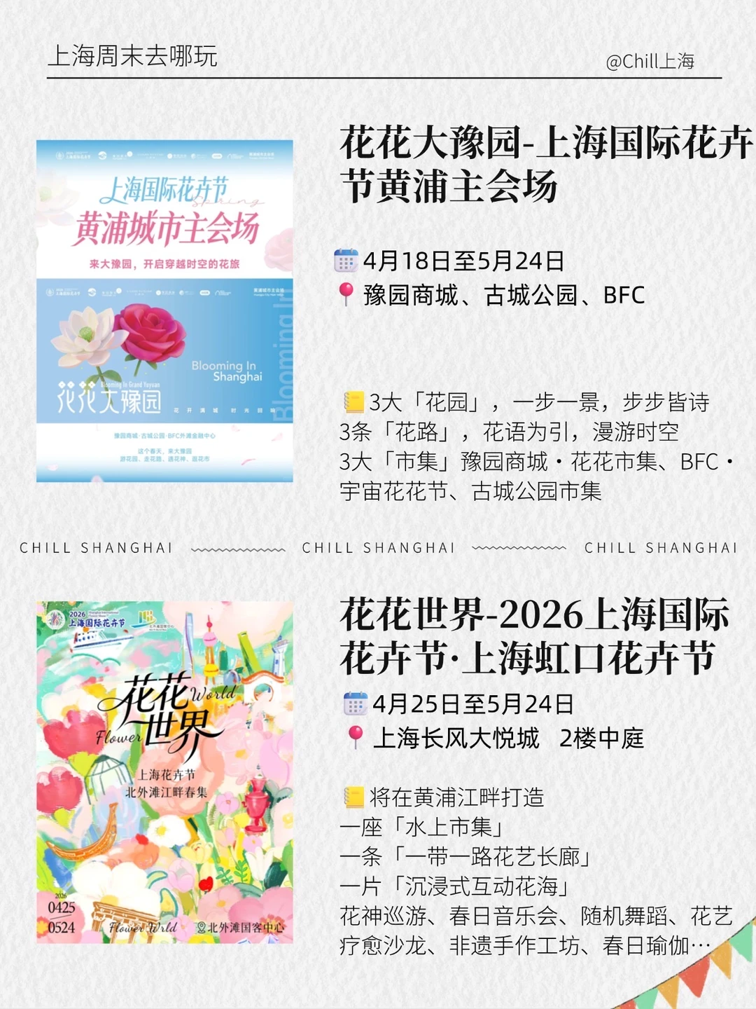 3️⃣卉聚前滩里 等2026上海国际花卉节普通前滩分会场的一系列活动!有花海、花艺、市集等等!