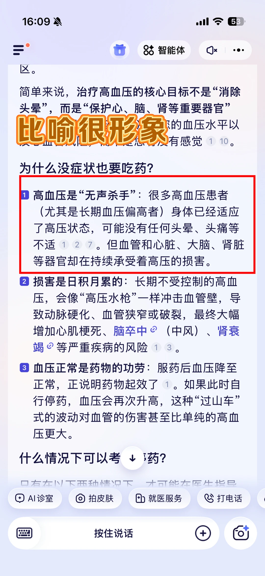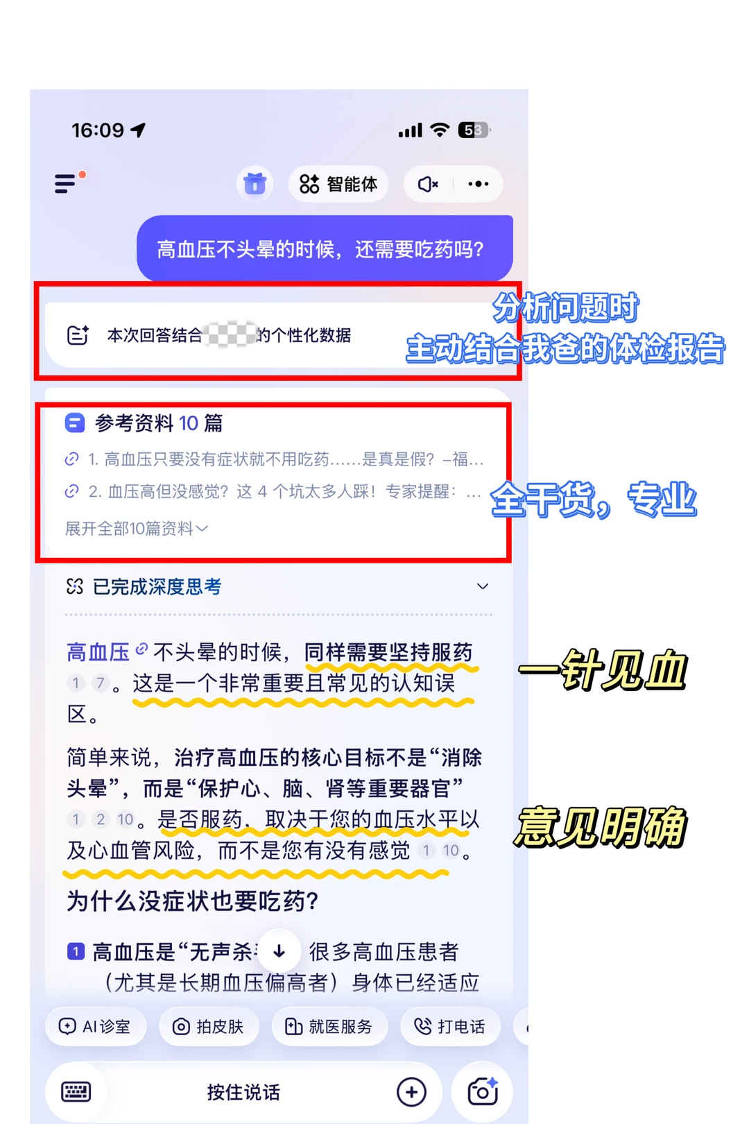 我爸看完也不好意思地挠头,很多人跟他一样,以为吃药控血压控的是高血压的症状,其实不是。这一番分析我也跟阿福学到了:让老爸吃药不能只是让他吃药,还是得要摆事实讲道理,所以,阿福比我管用👍