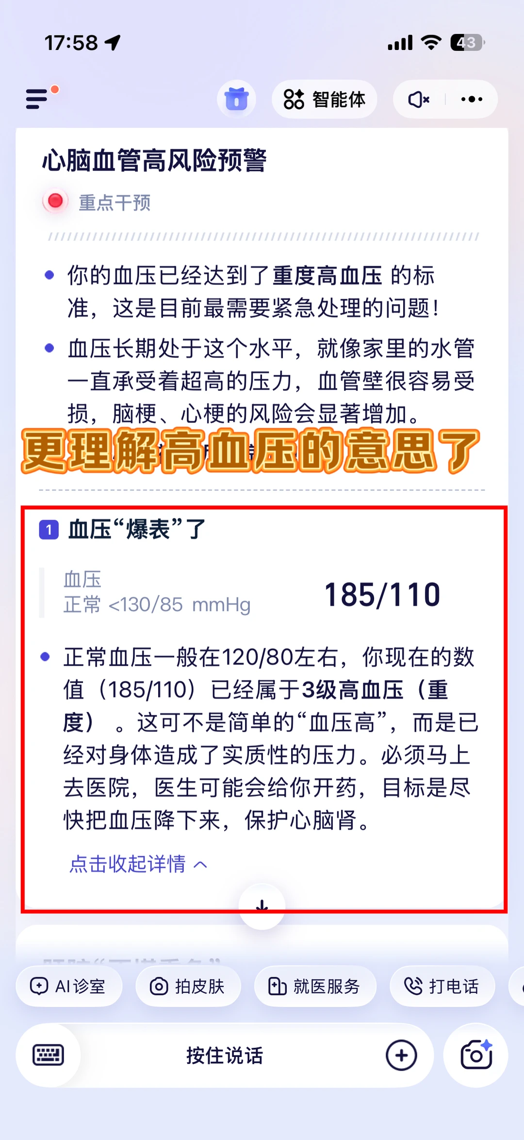 针对老头子这次自行停药的糊涂行为,阿福主动关联我爸的体检报告结果,明确说:高血压是“无声杀手”,治疗高血压的目标不是消除头晕,而是保护心脑肾等重要器官。所以,是否服药,取决于血压水平和心血管风险,而不是有没有头晕。
