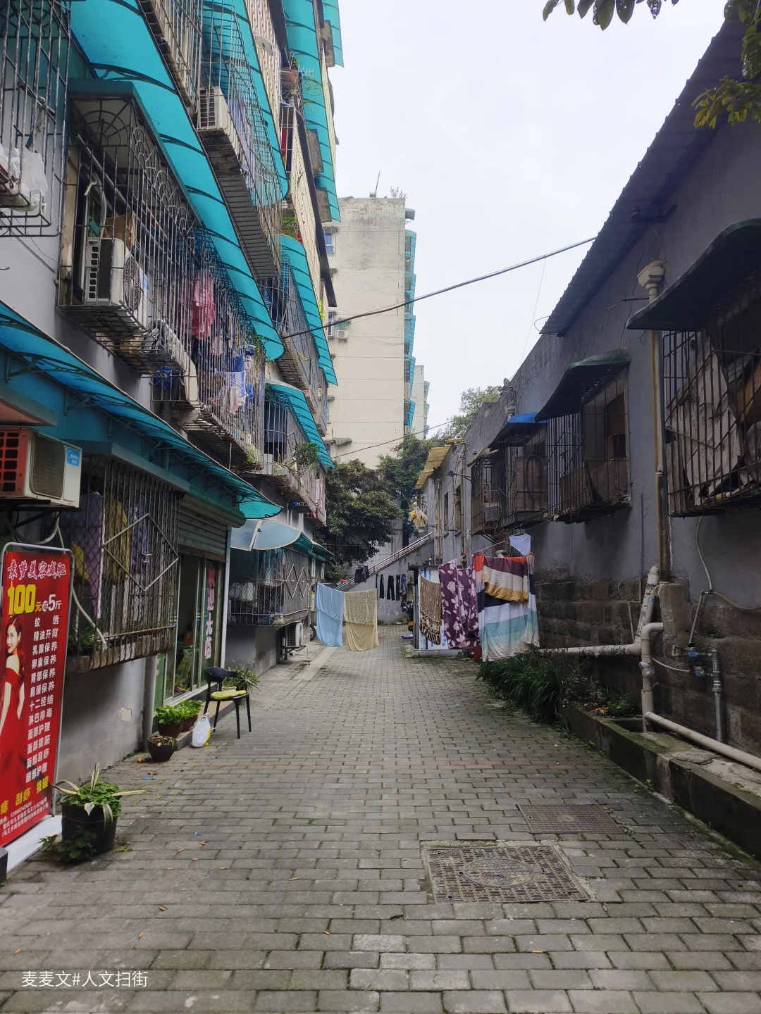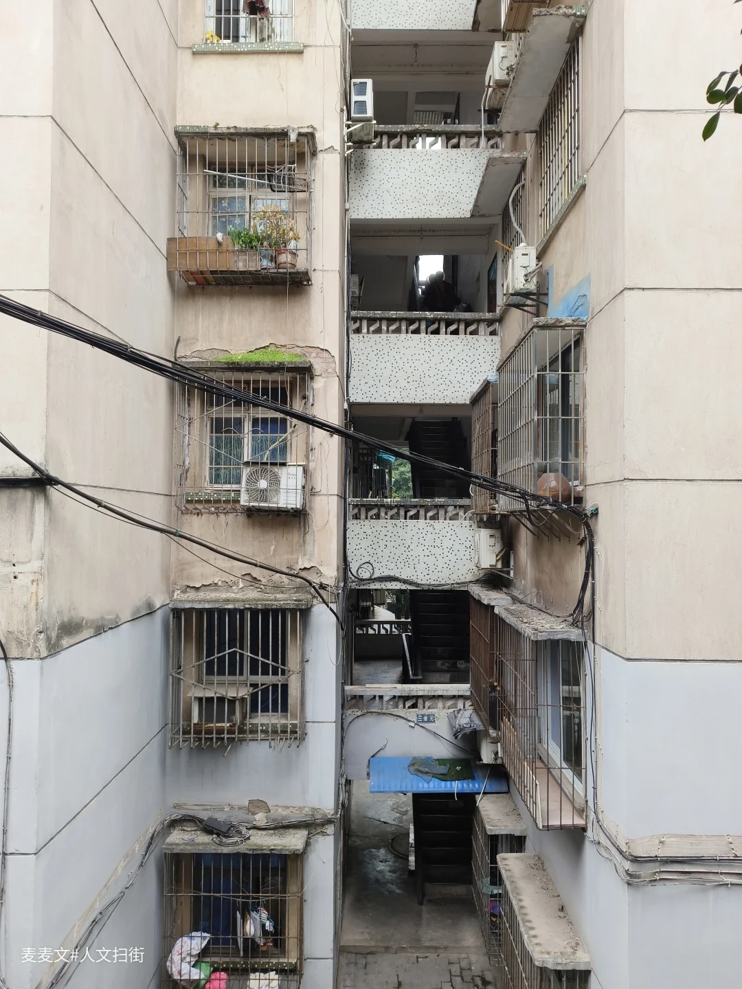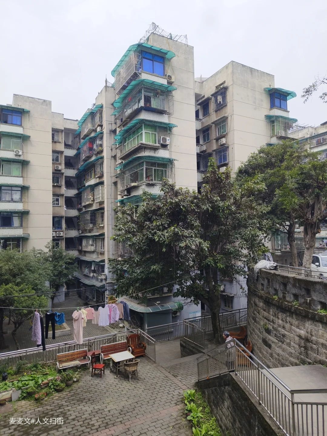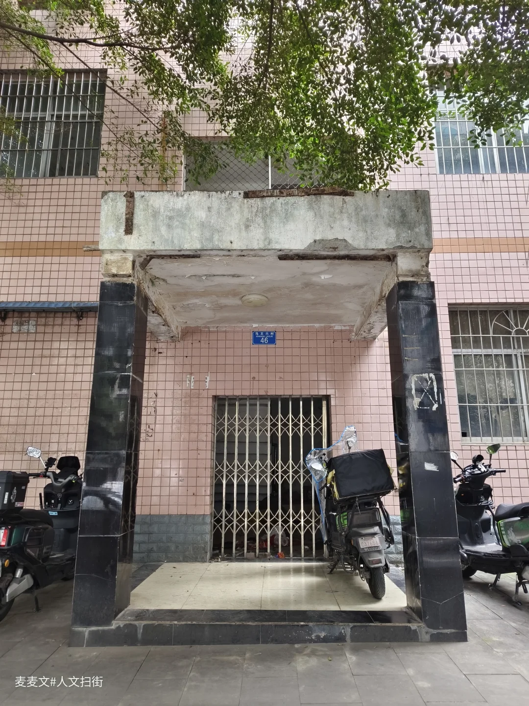 马王一至六村都是典型的国企职工大院,1995-1997年建成的步梯楼,家家户户装着防盗网、搭着雨棚,晾衣绳上飘着日常,老石墙、老凉亭,连墙上“马六3”的变电标识都满是岁月痕迹。