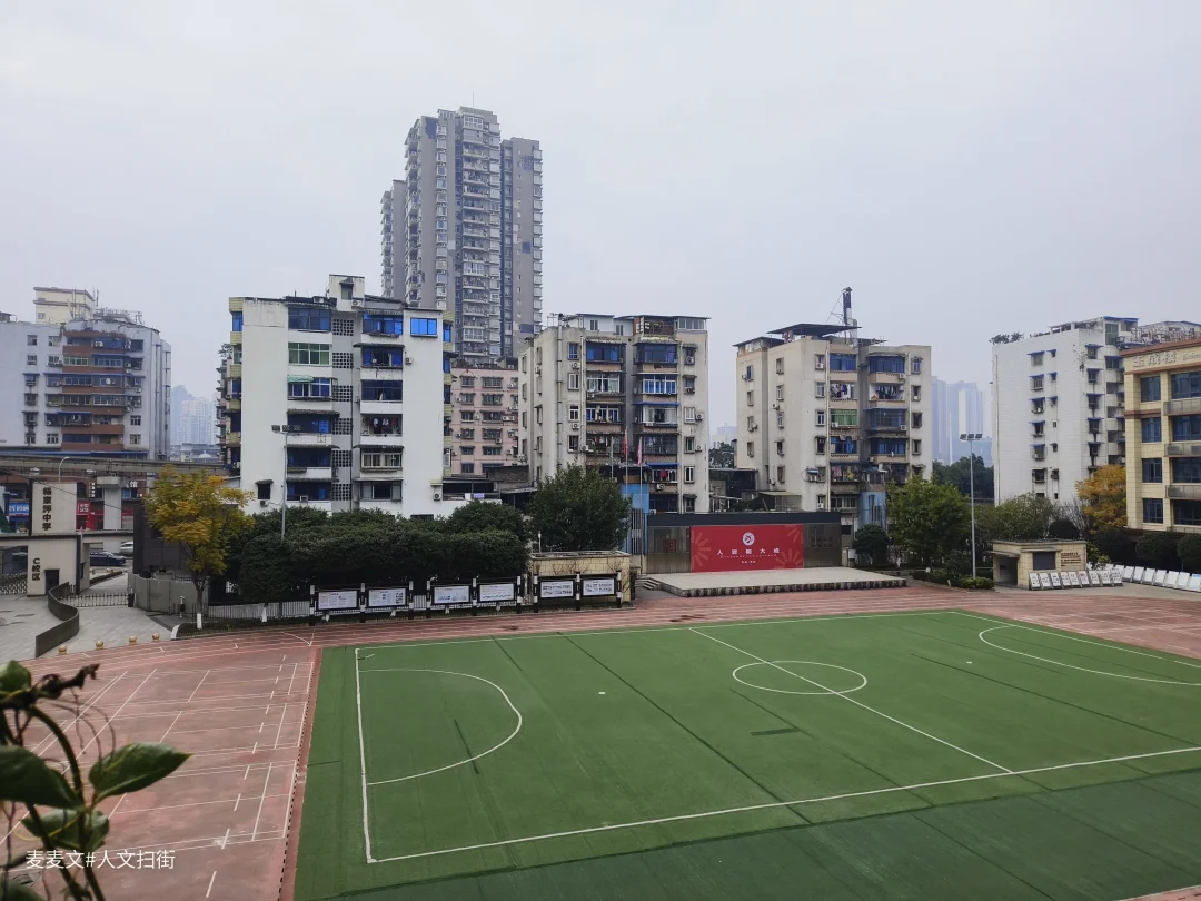 修鞋摊守在路口,老太婆背着大包爬楼梯,凉亭里是下棋聊天的老街坊,杨家坪中学C区操场边是放学的孩子。没有精致的网红店,只有茶馆、麻将馆、菜市场,0.5元/㎡的物业费,是最踏实的生活成本。