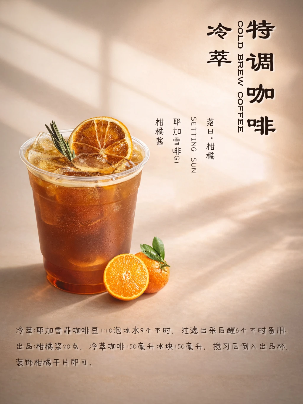 谁懂啊!这款落日柑橘冷萃特调真的太绝了!柑橘的清新与咖啡的醇厚碰撞出不一样的火花,每一口都是享受!