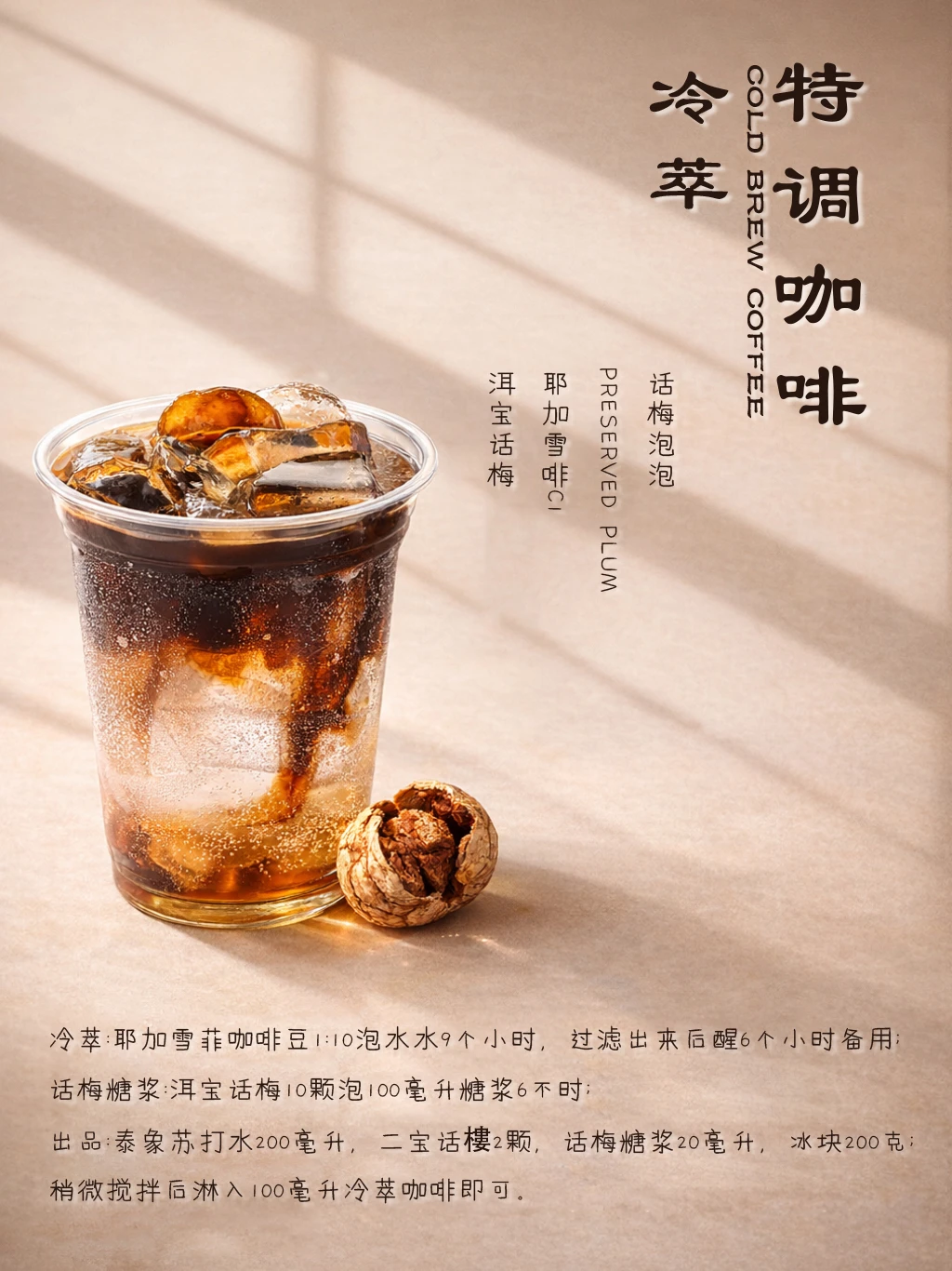 夏日解暑神器话梅泡泡冷萃特调来啦!话梅的酸甜与咖啡的苦味相互中和,再加上气泡水的清爽,一口就让你透心凉!
