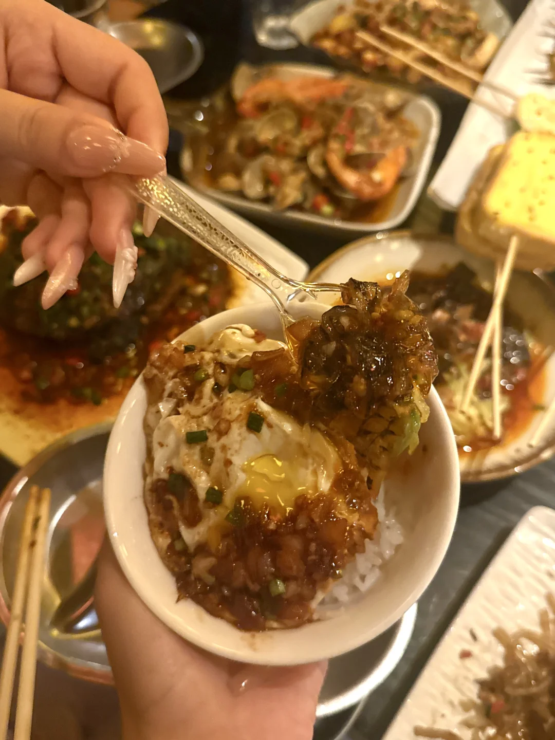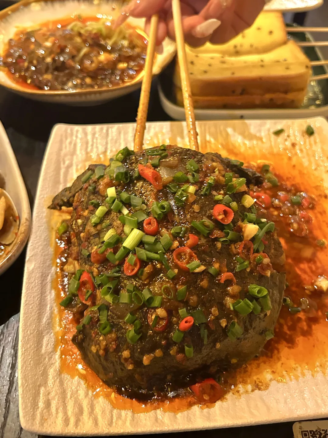 里面东西都特别好吃 全网爆火的网红菜公瑾爆蛋也是终于吃到了 外酥里嫩裹满秘制酱汁 酸甜开胃拌饭能炫三碗~外皮焦脆内里嫩到爆汁的烤鱼麻辣鲜香越煮越入味 她家的爆辣辣辣辣甲鱼真的吃起来很过瘾 必点的炒粉更是天花板级别 锅气十足 碳水脑袋直接快乐起飞