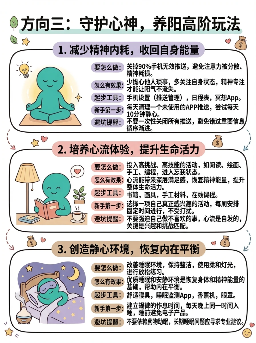 行动破解焦虑,减少心神耗阳,是稳住阳气的核心。
