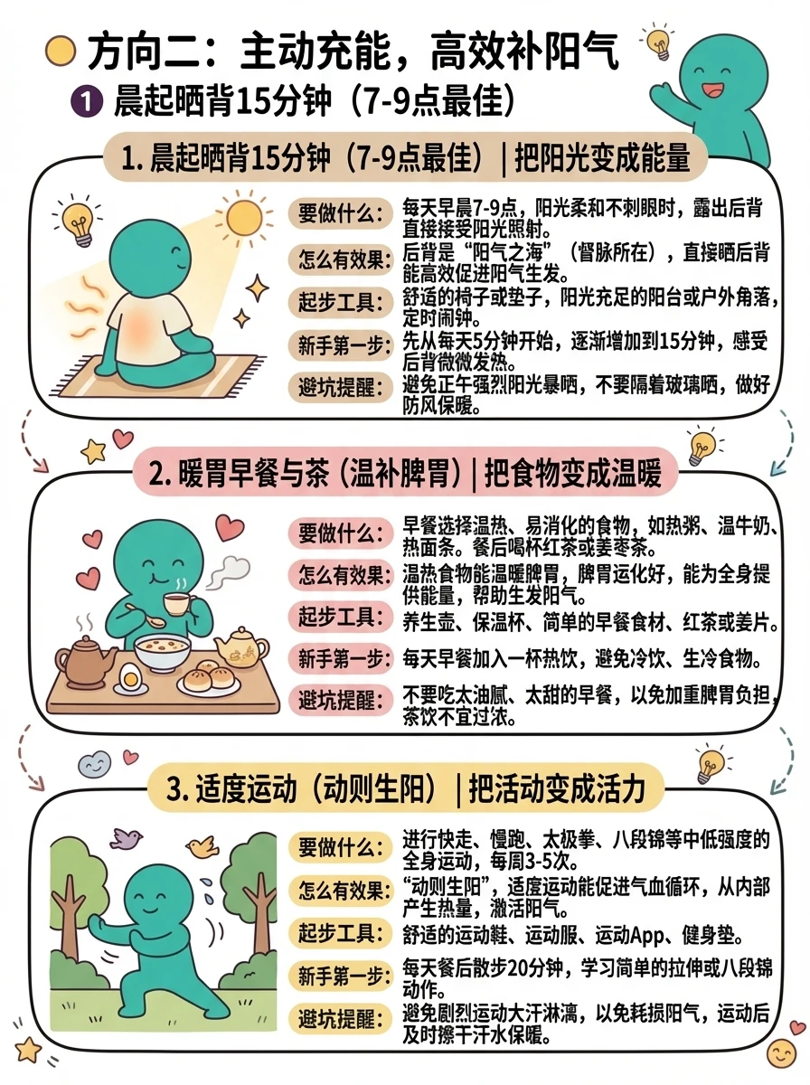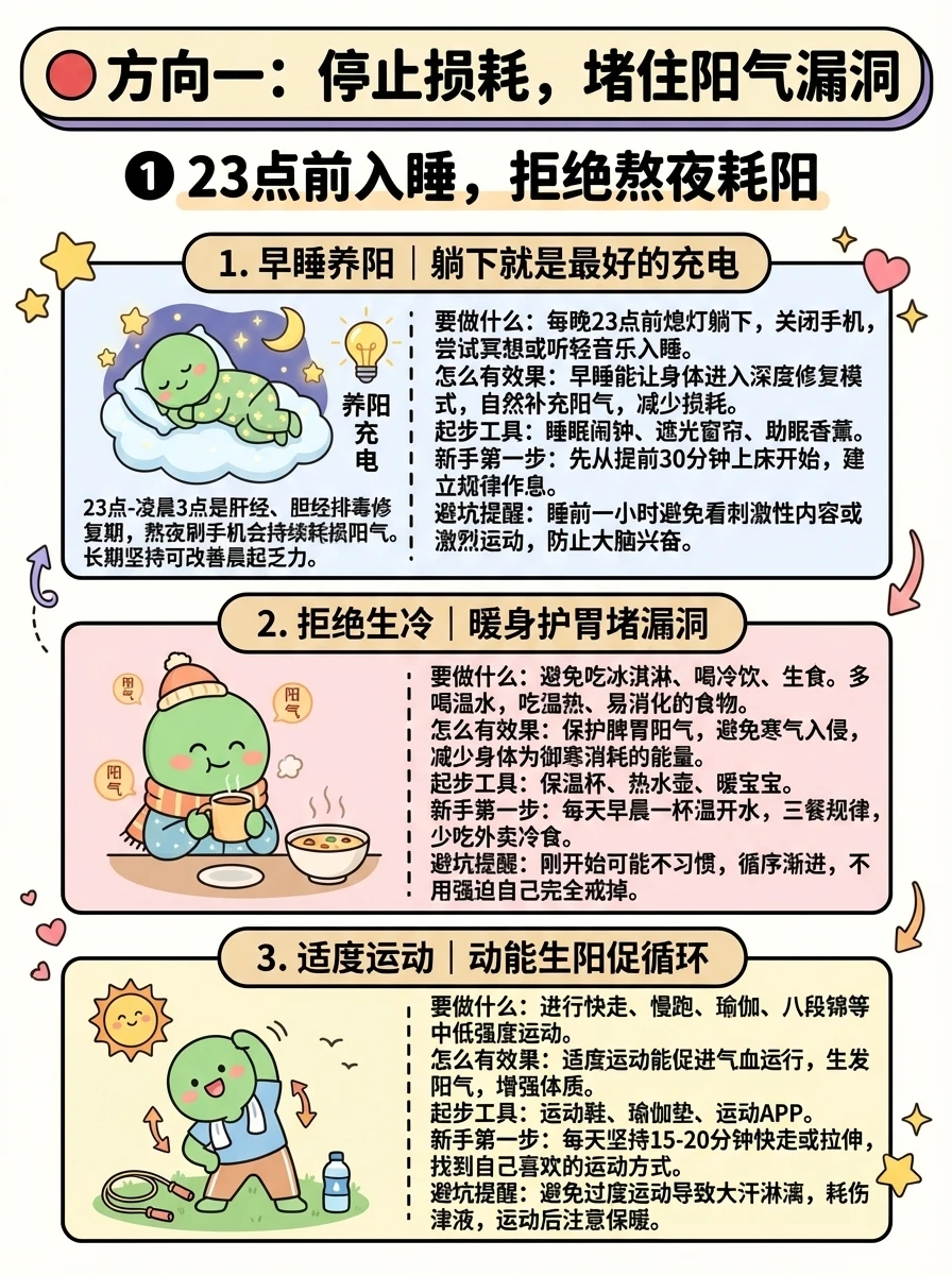 🔴 方向一:停止损耗,堵住阳气漏洞