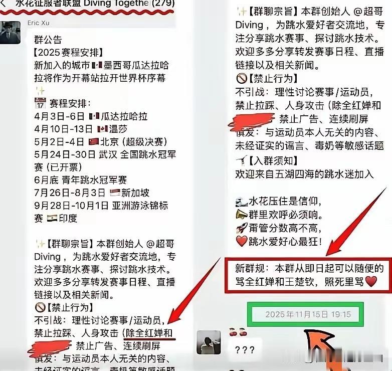 想不通,282个人竟然组成一个群,叫“水花征服者联盟“,取的名字高大尚,其实不为别的,就为了骂人,他们骂的人不是别人,正是小小年纪为国争光,连续两届奥运会夺冠的全红婵。