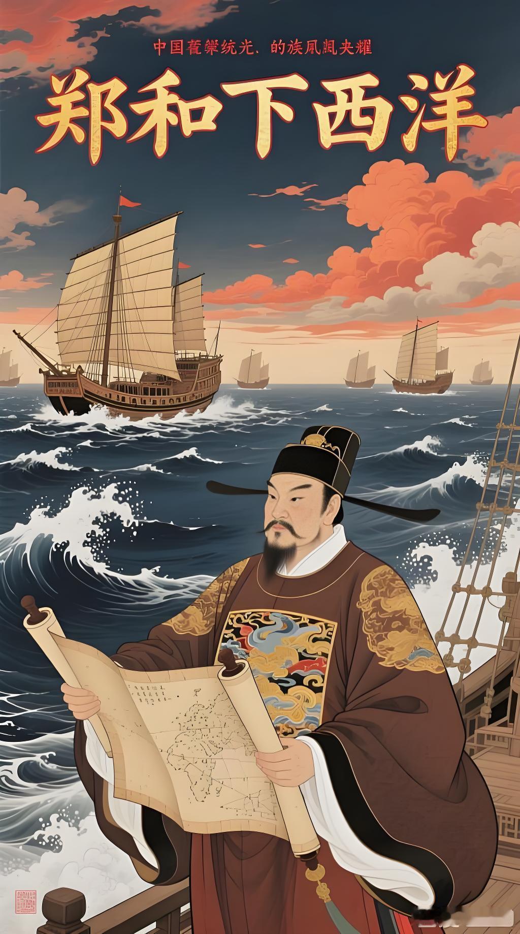 用“郑和下西洋”在百度搜图,出来一堆百度AI生成的图,搞笑的是,图中的郑和都是长