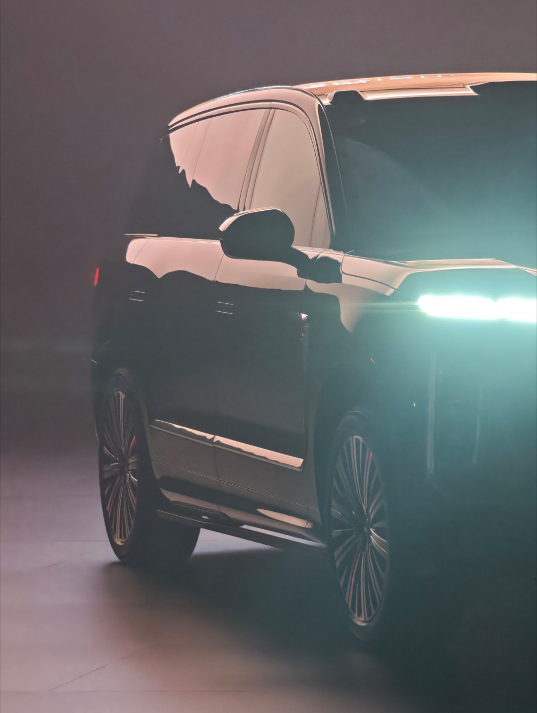 暗光条件下的蔚来ES9,大灯亮起、车身型面折射以及高级车漆,真的太好看了。
