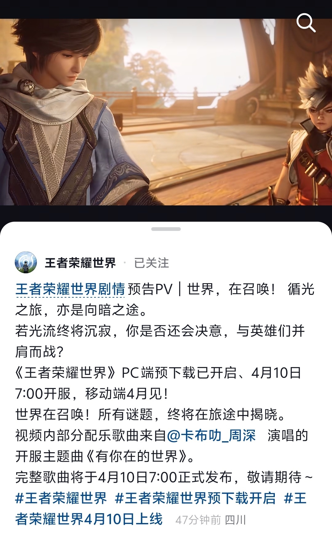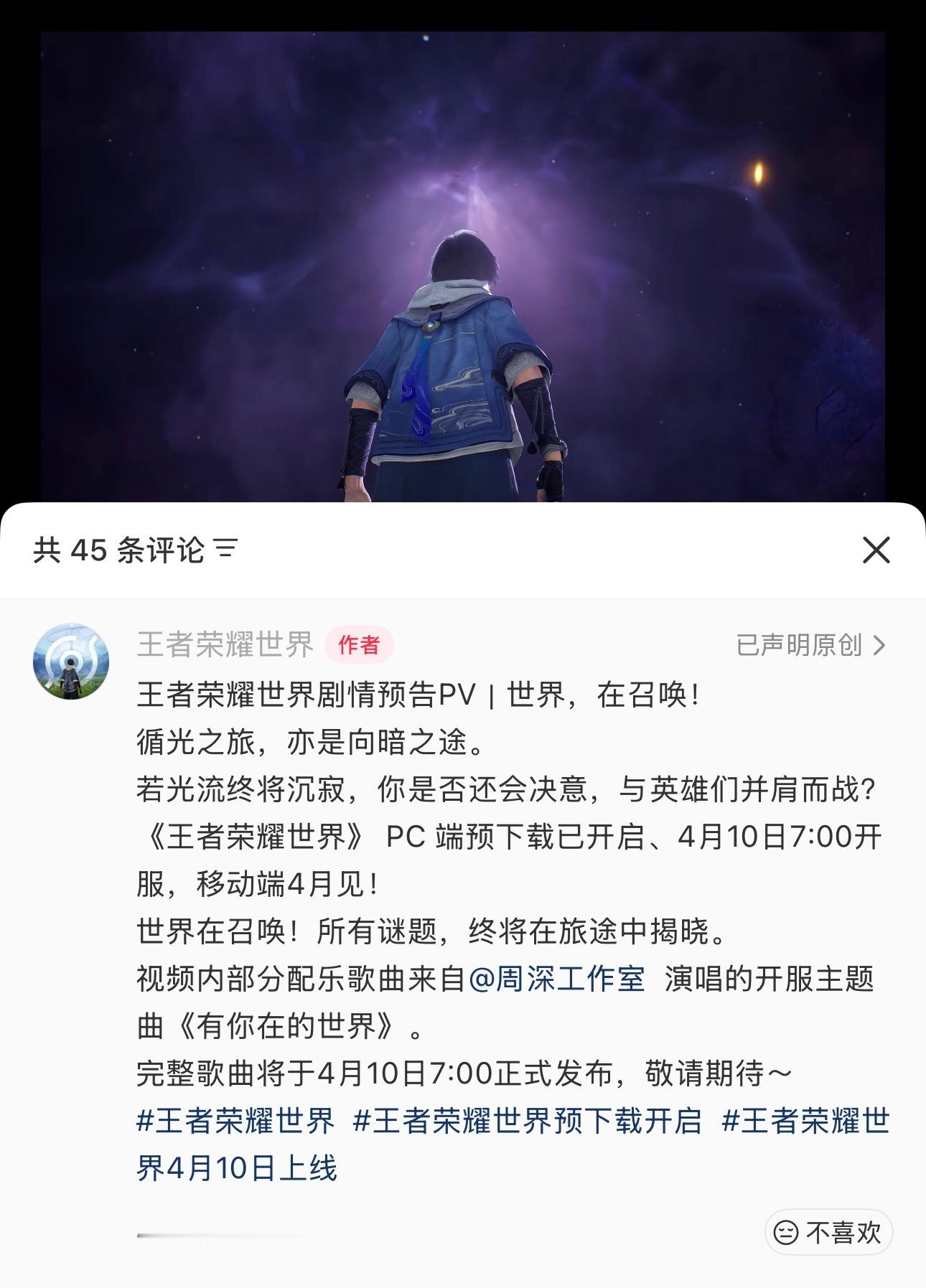 周深 📣4.9 【王者荣耀世界】物料1️⃣📣【王者荣耀世界】在多平台更新了