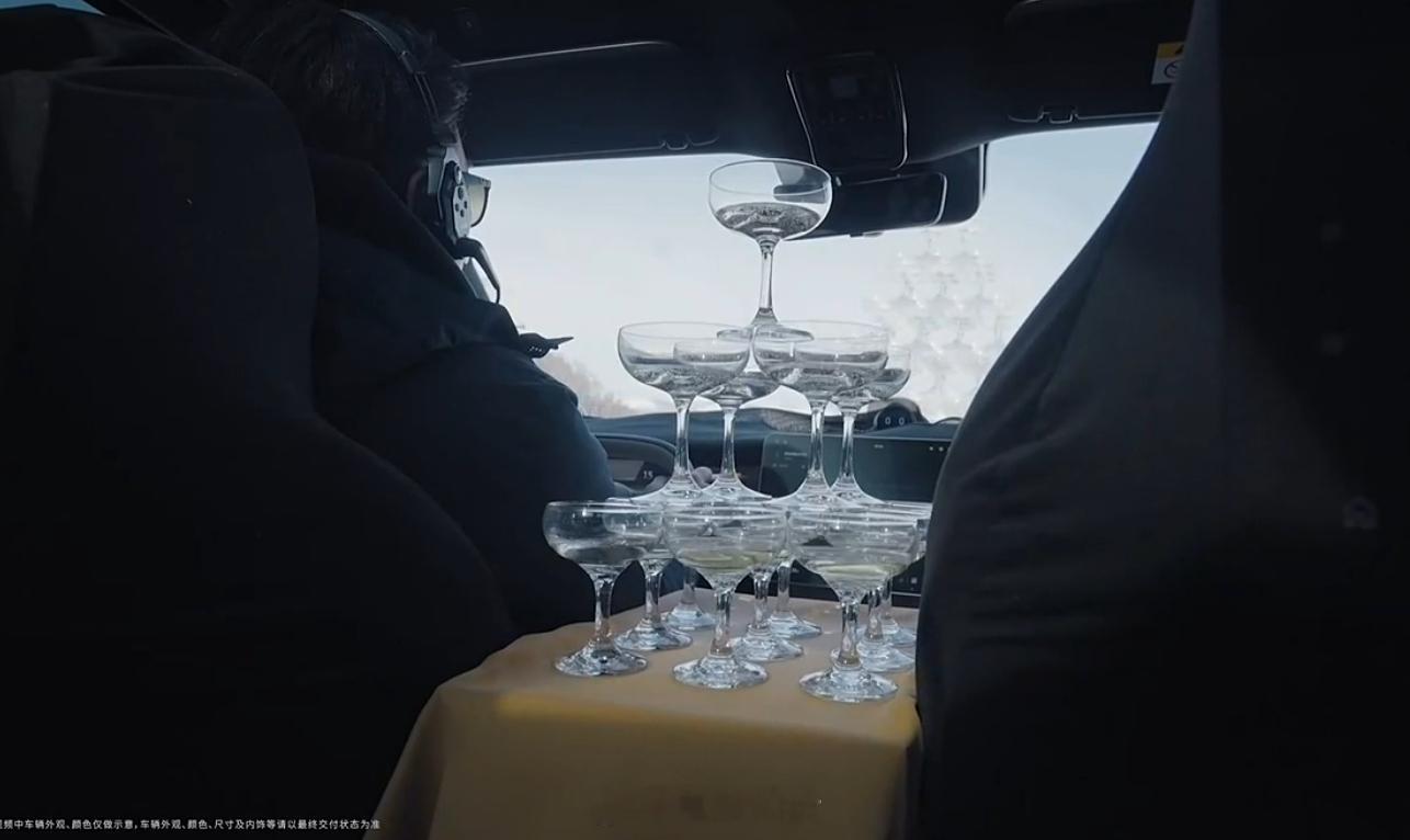 难度加码冰天雪地绕弯的减速带,车内外两组香槟塔都没倒!