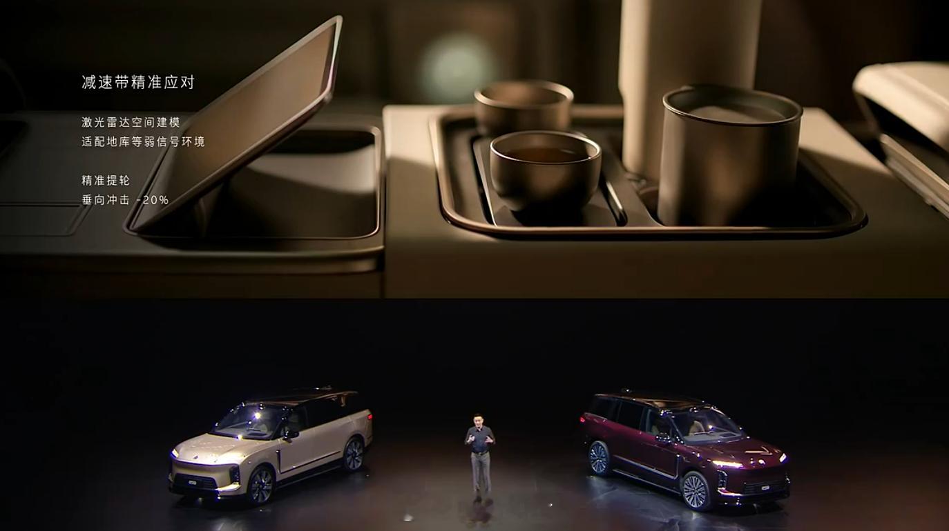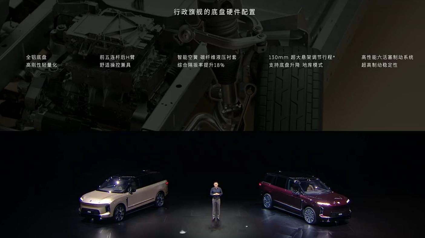 蔚来ES9标配线控转向和后轮转向,转弯半径只有5.4米,搭载天行全主动悬架支持弹跳脱困能力,向上行程60mm,最大涉水深度810mm。