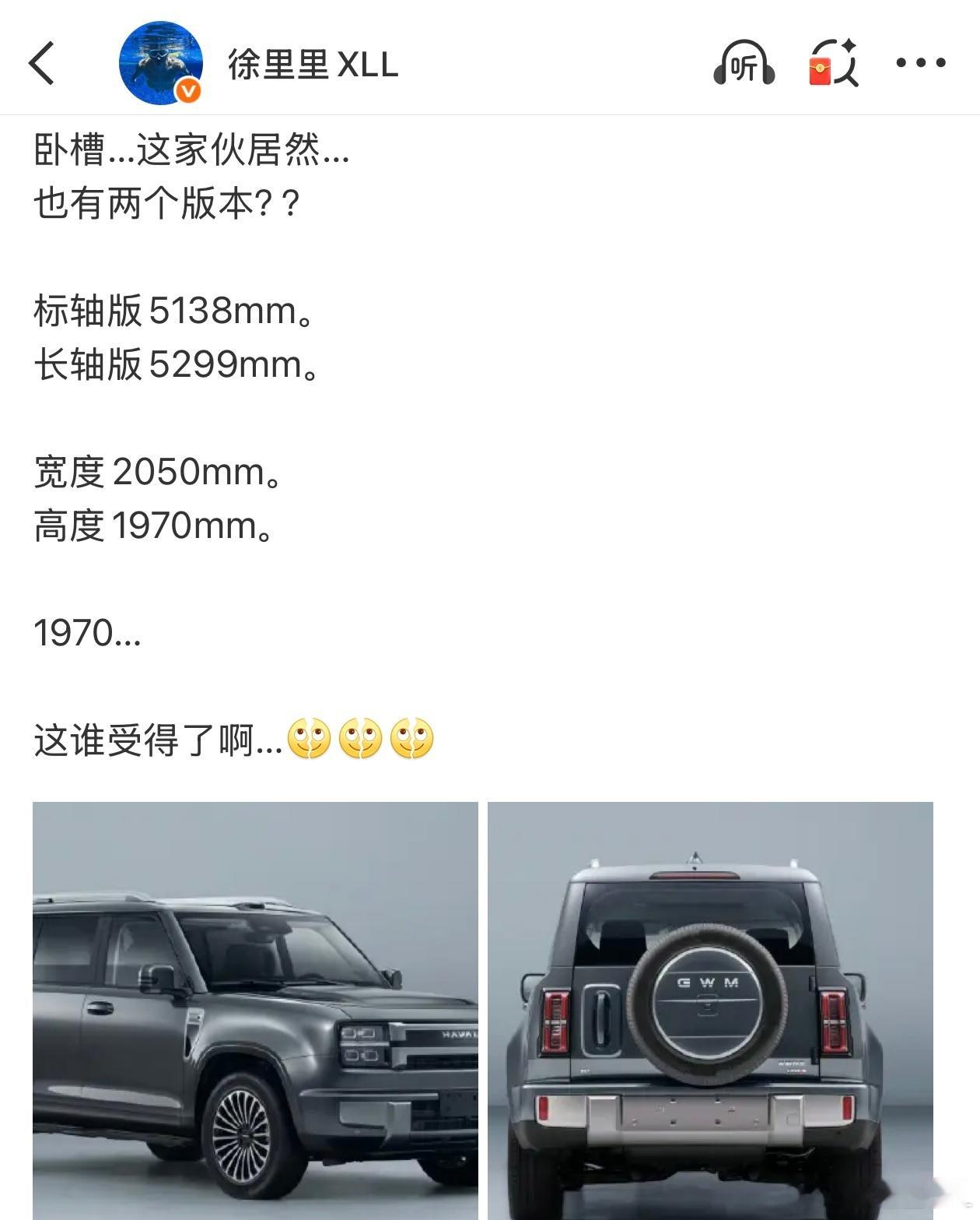 一个魏牌V9X,只要长城愿意,他可以做出五个尺寸、十个尺寸。如果不是法规不允许,我都怀疑归元平台会放开尺寸和轴距的选装。