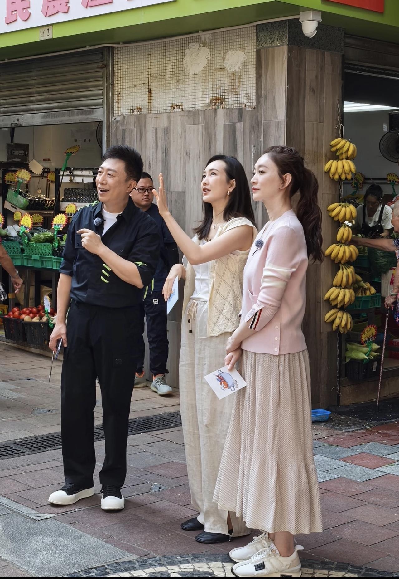 2024年,王鸥、李小冉和主持人陈伟鸿,在澳门拍摄综艺《澳门双行线》第二季时,在菜市场被偶遇的画面。