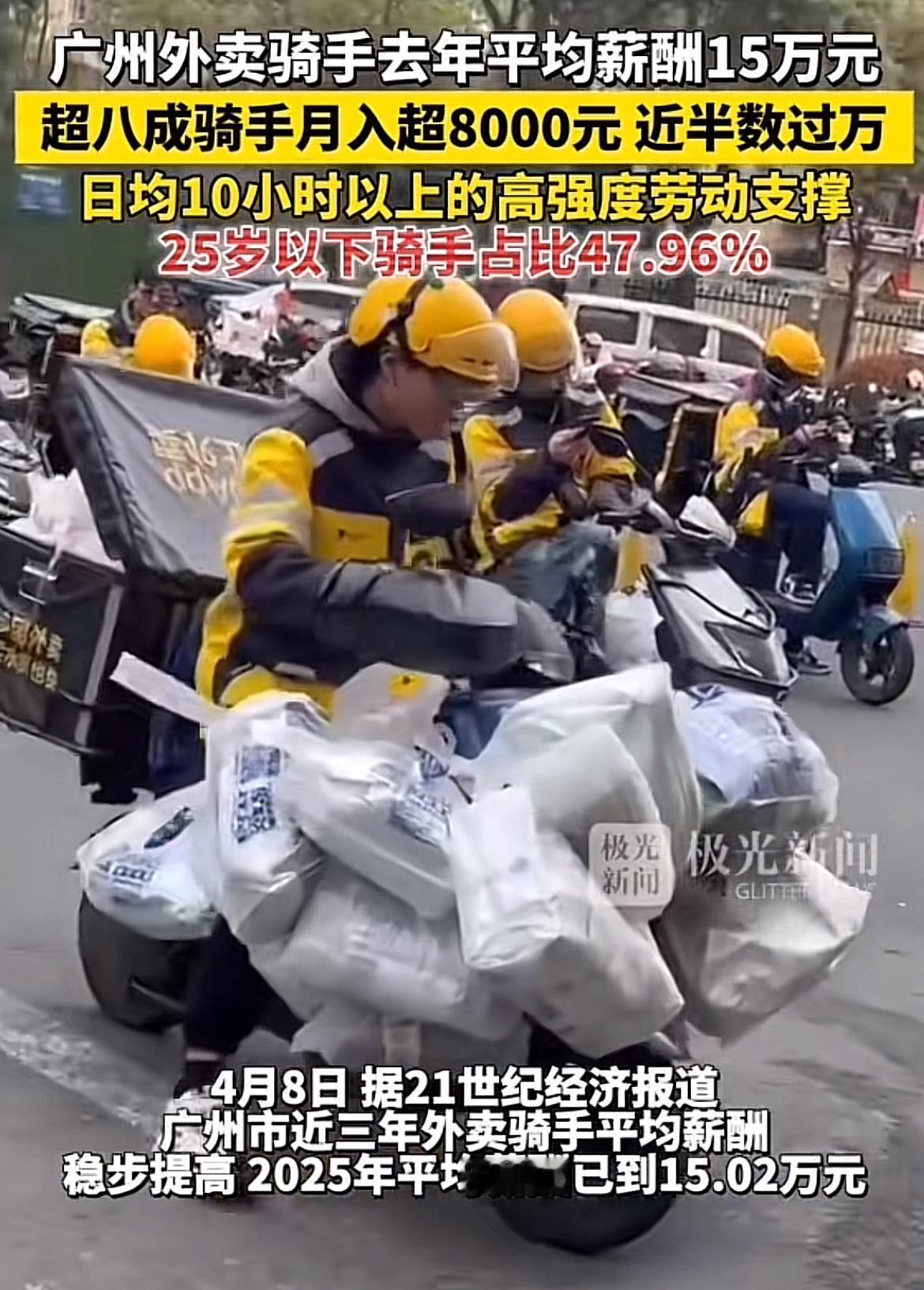 广州外卖骑手月薪15万这事,最近可挺火。根据广州市总工会发布的数据,2025年广