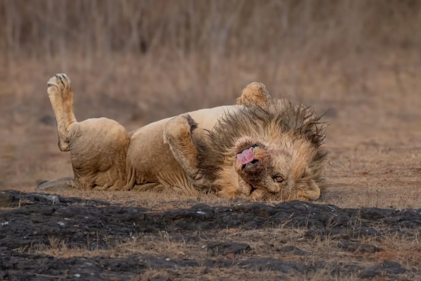 吃饱了的亚洲狮。这看起来像萨尔曼