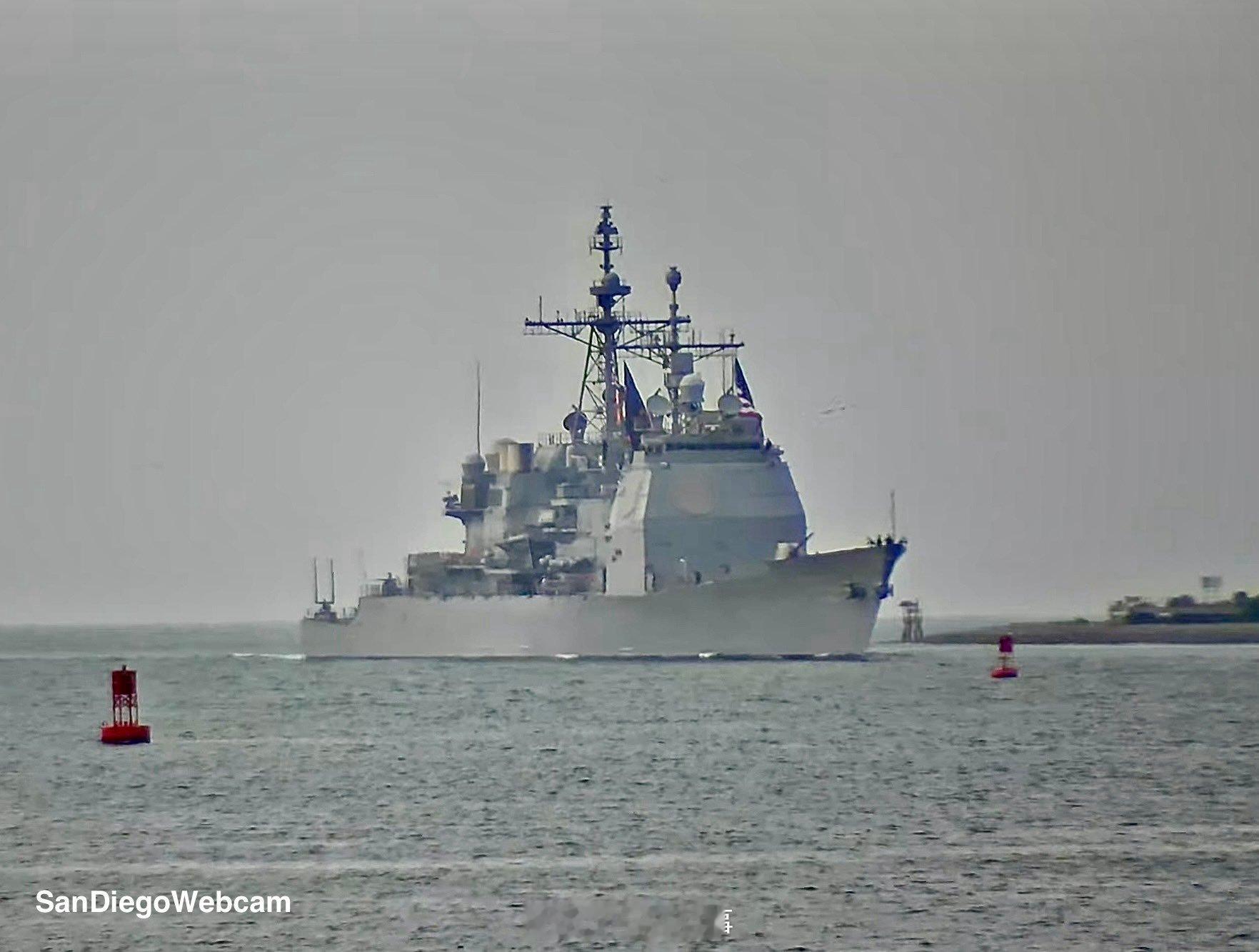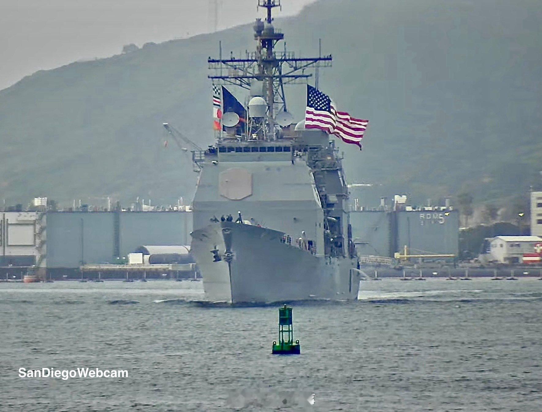 全球武器装备盘点每天认识一件兵器烽火问鼎计划 2026 年 4 月 9 日,美国海军提康德罗加级导弹巡洋舰“长津”号(CG 65)驶入圣地亚哥。