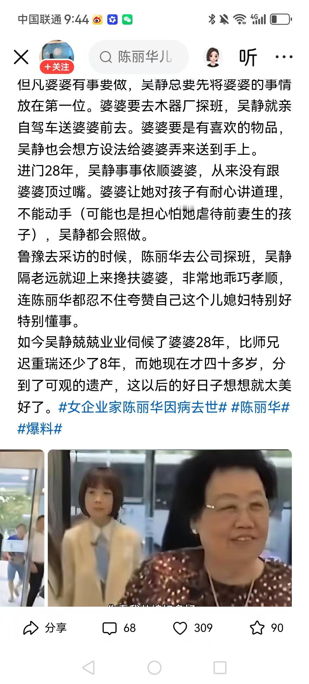 陈丽华跟鲁豫夸的儿媳妇吴静可不是一般人。有钱就有规矩,没钱你试试。面对几百亿的家产,谁也能忍!