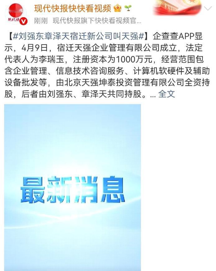 正是这份家乡情怀,让夫妻俩把新公司的选址定在了宿迁,这家名为宿迁天强企业管理有限公司的新主体,注册资本1000万元,经营范围涵盖企业管理、信息技术咨询等多个领域,由夫妻俩共同持股的北京天强坤泰投资管理有限公司全资控股。