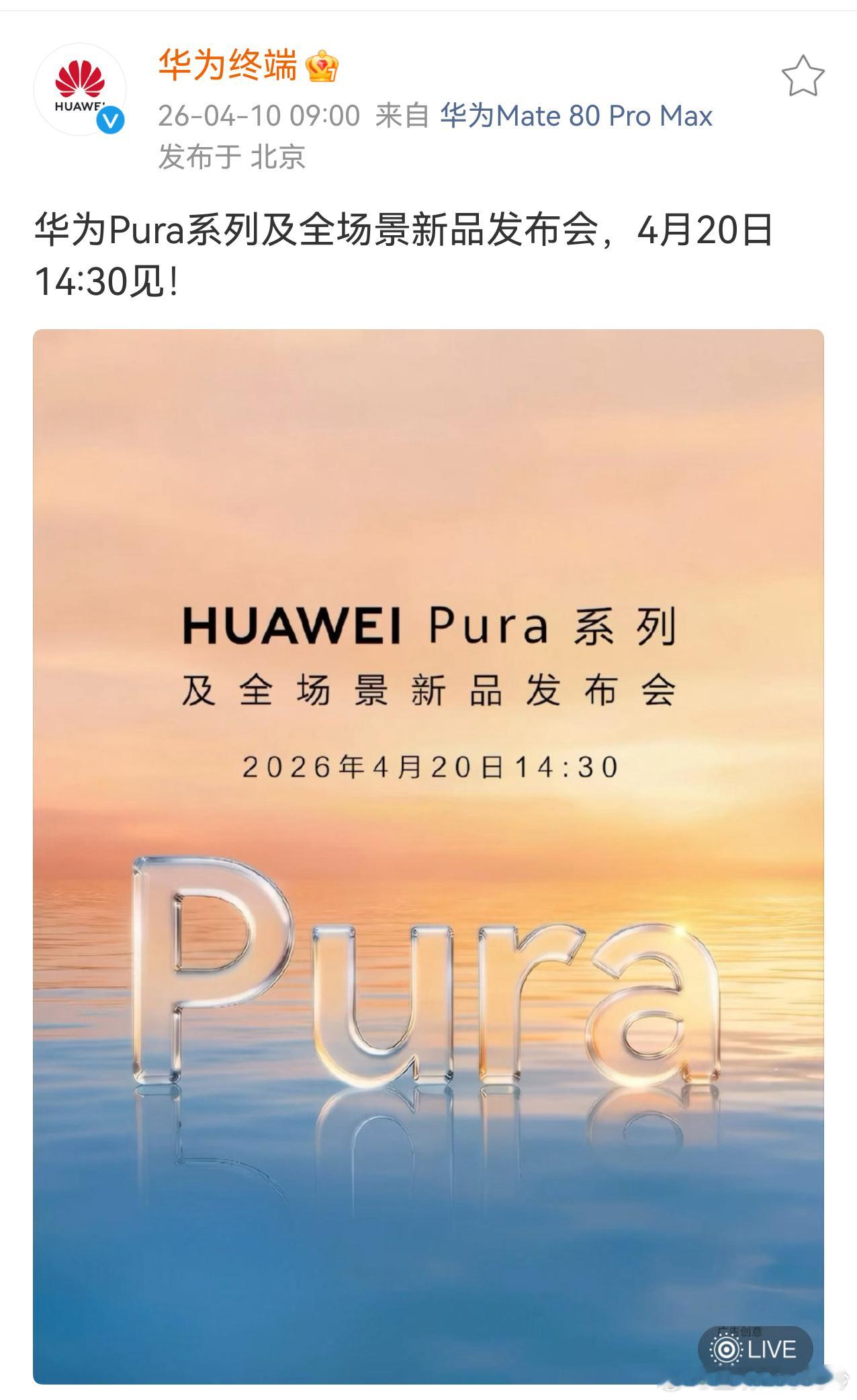 华为Pura90将于4月20日发布 我猜啊,这次发布会最大的亮点还得看那个“橘子海”。反正第一眼就是P系列经典的味道,蓝橙渐变夏天度假感直接拉满,真机质感肯定不赖。