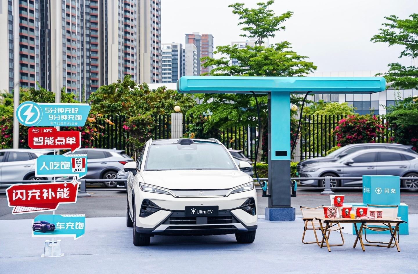 想必大家充电都有过这种经历,干等着无聊肚子还饿,开车绕路买饭又特别折腾,特别耽误时间,现在终于不用为难了,比亚迪闪充趣味出圈,联手肯德基直接解决出行难题~