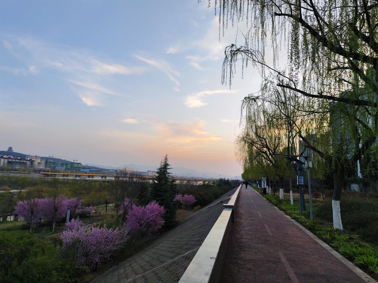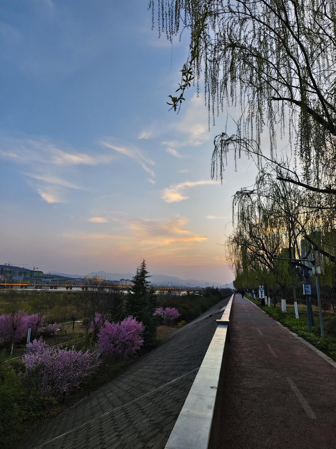 吃过饭,怎么能轻易回宾馆呢?不去看看汝河畔的日落,去欣赏一下汝阳夜晚的姿容?当我们走上汝河大堤,太阳已经落下留给天空的一抹红颜,点亮了汝阳的上空。河堤下竹林中的画眉,用一声声的清脆的鸣叫,和今天告别。河堤上以及栈道上的男男女女,老老少少用散步的方式让身心最大程度的舒缓。周边的远山上有多座高耸入云的塔,那里肯定有精彩的故事,等待人们去解读,我想那将是我们下次出行的终点。回到大街,街上的霓虹扎着堆儿地亮起,街灯也鬼魅地点亮了,一排排地悬在树上,在夜幕下非常地耀眼。可以说如今的汝阳,夜,不再寂寞。