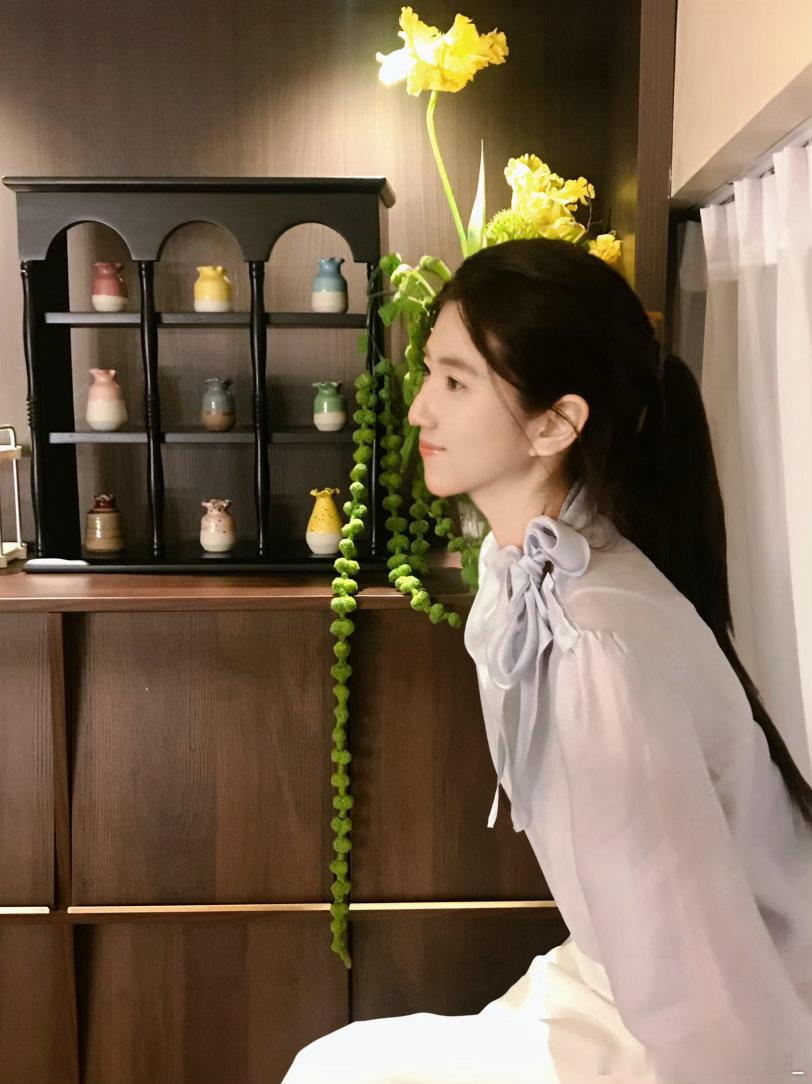 张纯烨穿搭壁纸:浓颜精致高马尾,黑裙修身显婀娜。张纯烨