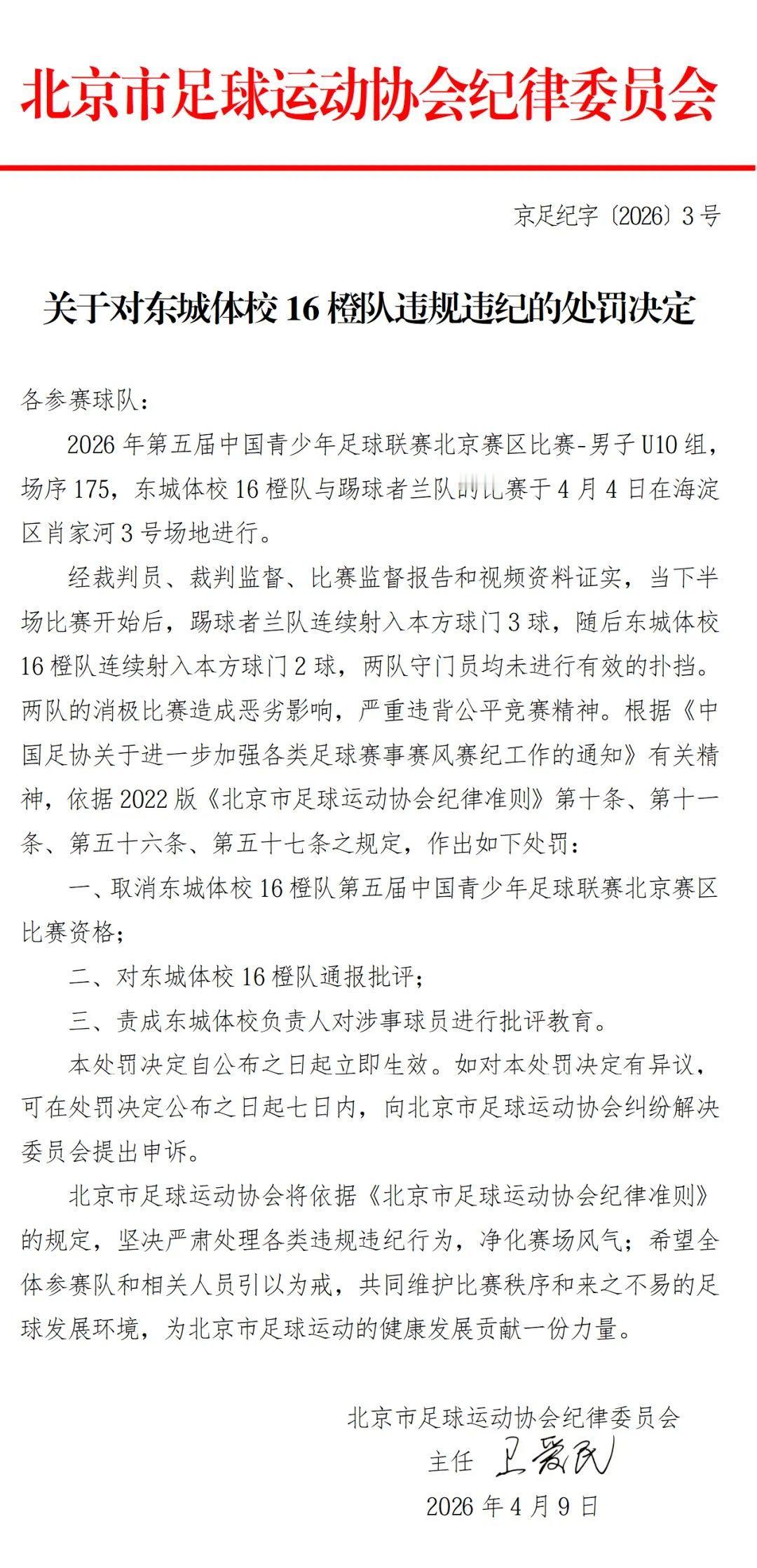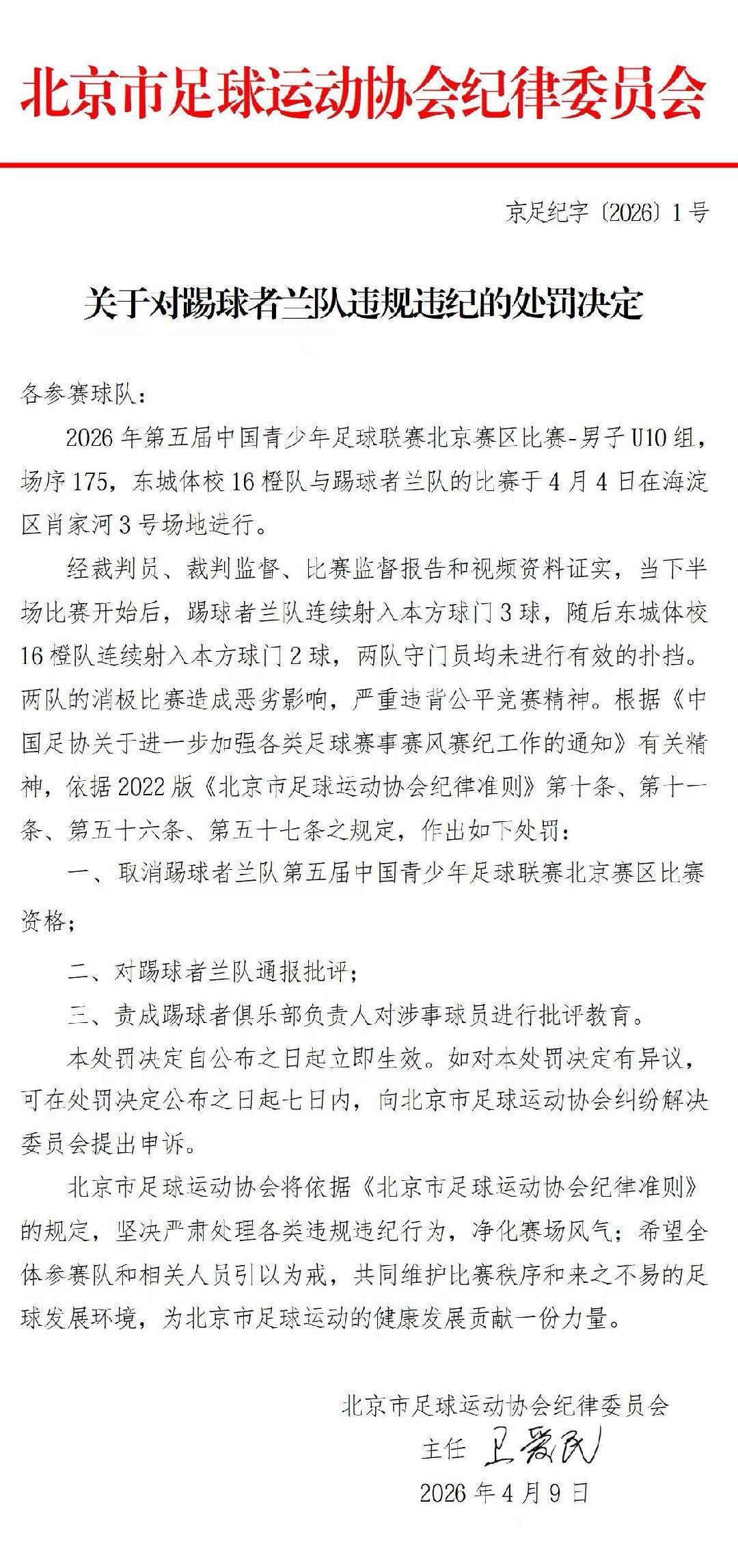 我听到的说法,导火索是赛制设计不合理。这两支球队都已经提前出线,都不想当小组第一;因为小组第一全部进入上半区,之后每一轮淘汰赛面对的都会是其他组的小组第一。而小组第二全部进入下半区,每一轮淘汰赛面对的都会是其他组的小组第二。为了不拿小组第一,两边可谓是绞尽脑汁,东城体校先不讲武德,让门将踢后卫,不管是有意无意的,先干进去一个乌龙。之后爱X客(踢球者兰队)教练不乐意了,直接在场边指挥自家孩子往自家球门踢。看到爱X客教练指挥球员踢乌龙,裁判、比赛监督也都没管,东城体校教练也有样学样,让自家孩子踢乌龙。