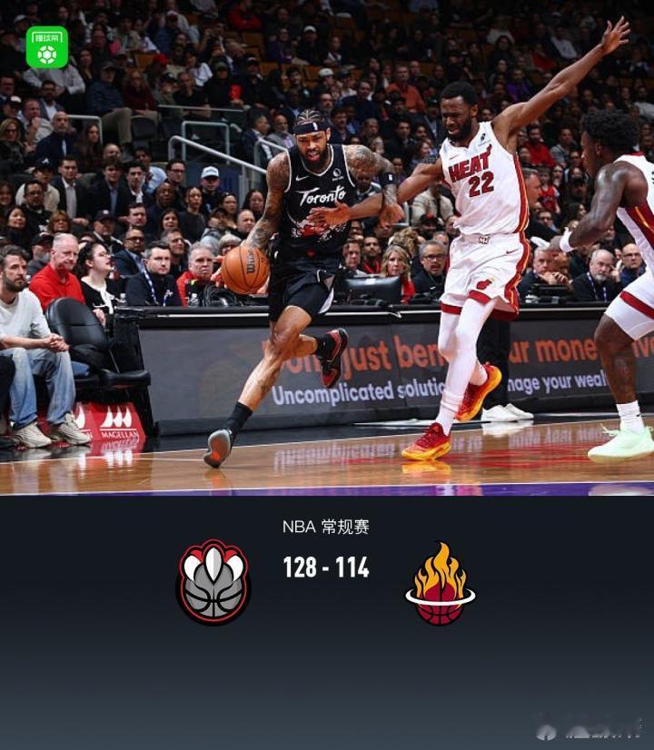 猛龙 128-114 横扫热火!英格拉姆开启杀神模式,狂砍 38+7+7 统治攻防,创下队史加盟首季得分纪录!多伦多全员皆兵,外线火雨扑灭迈阿密反扑势头,排名反超升至东部第五。北境之王,势不可挡! NBA 猛龙vs热火