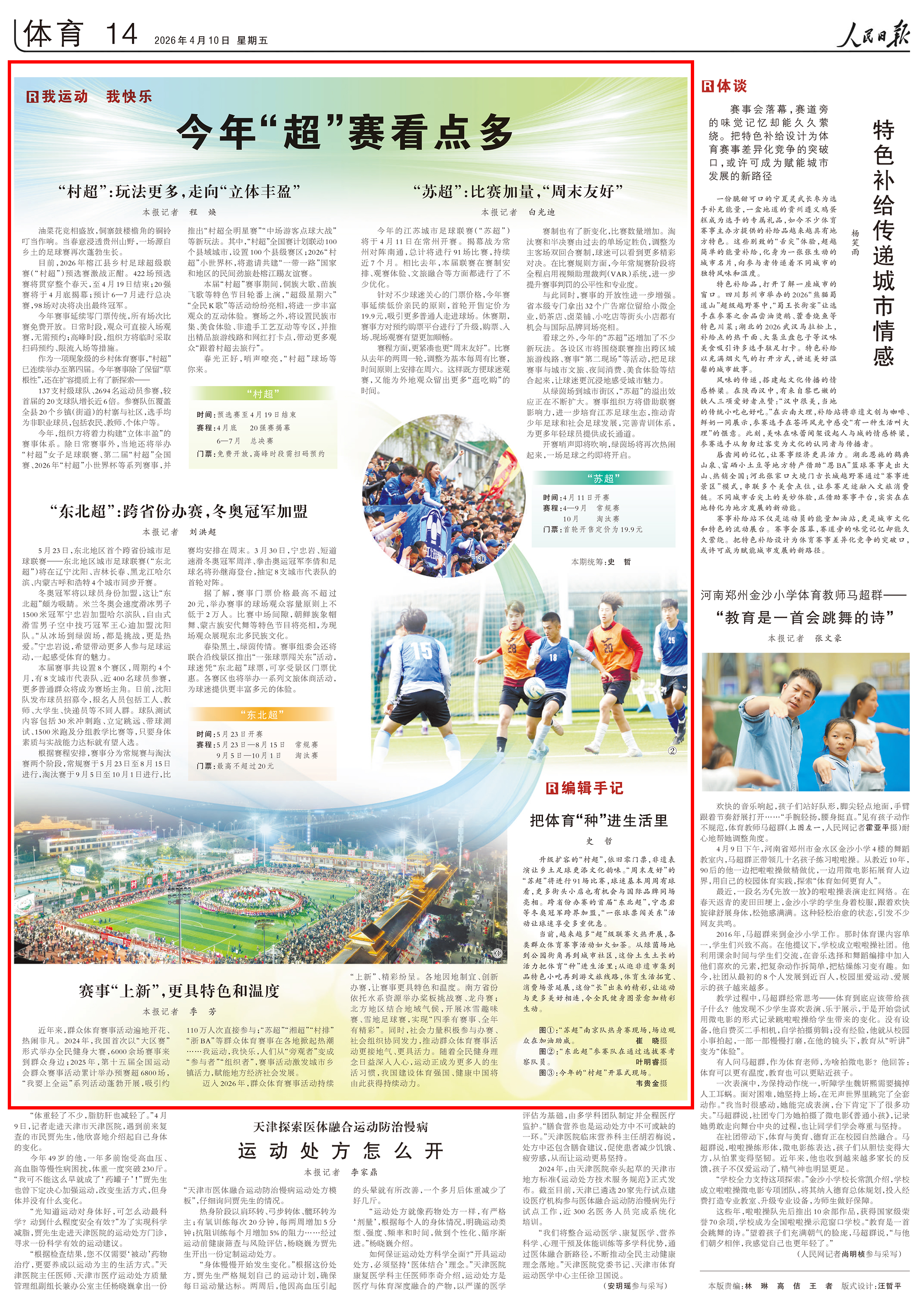 当前,越来越多“超”级联赛火热开展,各类群众体育赛事活动如火如荼。从绿茵场地到公园街角再到城市社区,这份土生土长的活力把体育“种”进生活里;从逛非遗市集到品特色小吃再到游文旅线路,体育生活拓宽、消费场景延展,这份“长”出来的精彩,让运动与更多美好相连,令全民健身图景愈加精彩生动。