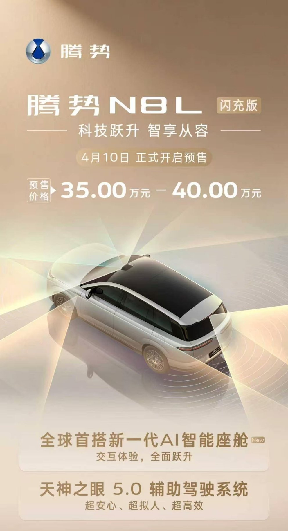 腾势N8L闪充版腾势N8L闪充版预售价35万元起腾势N8L混动闪充版纯电续航430公里