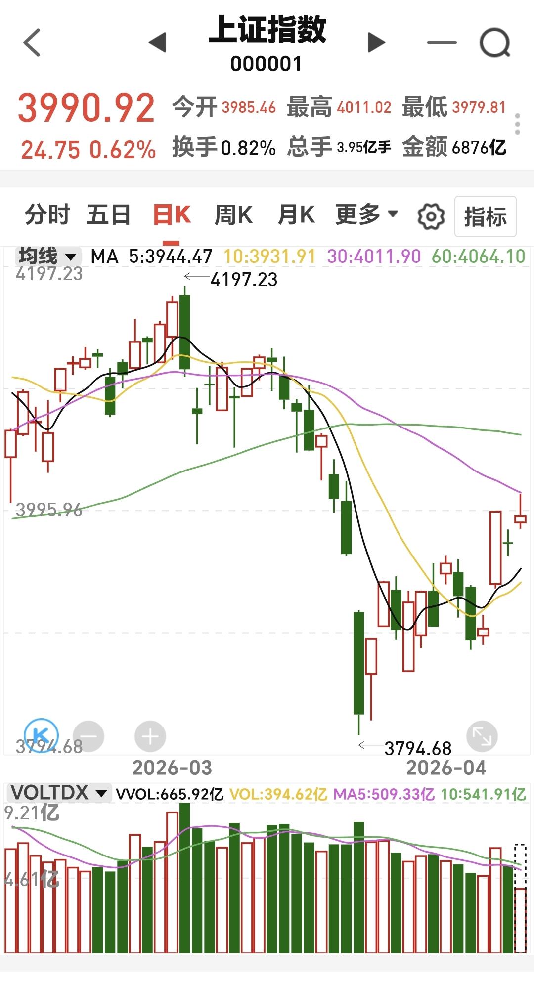 虽然市场是上涨的,但各个板块的情况不一样,有的板块可以考虑要不要进场,有的板块不建议进场,对于大环境来说,还是收盘之前观察能不能站稳4015点,在站稳4015点之前都不能判断市场已经反转。