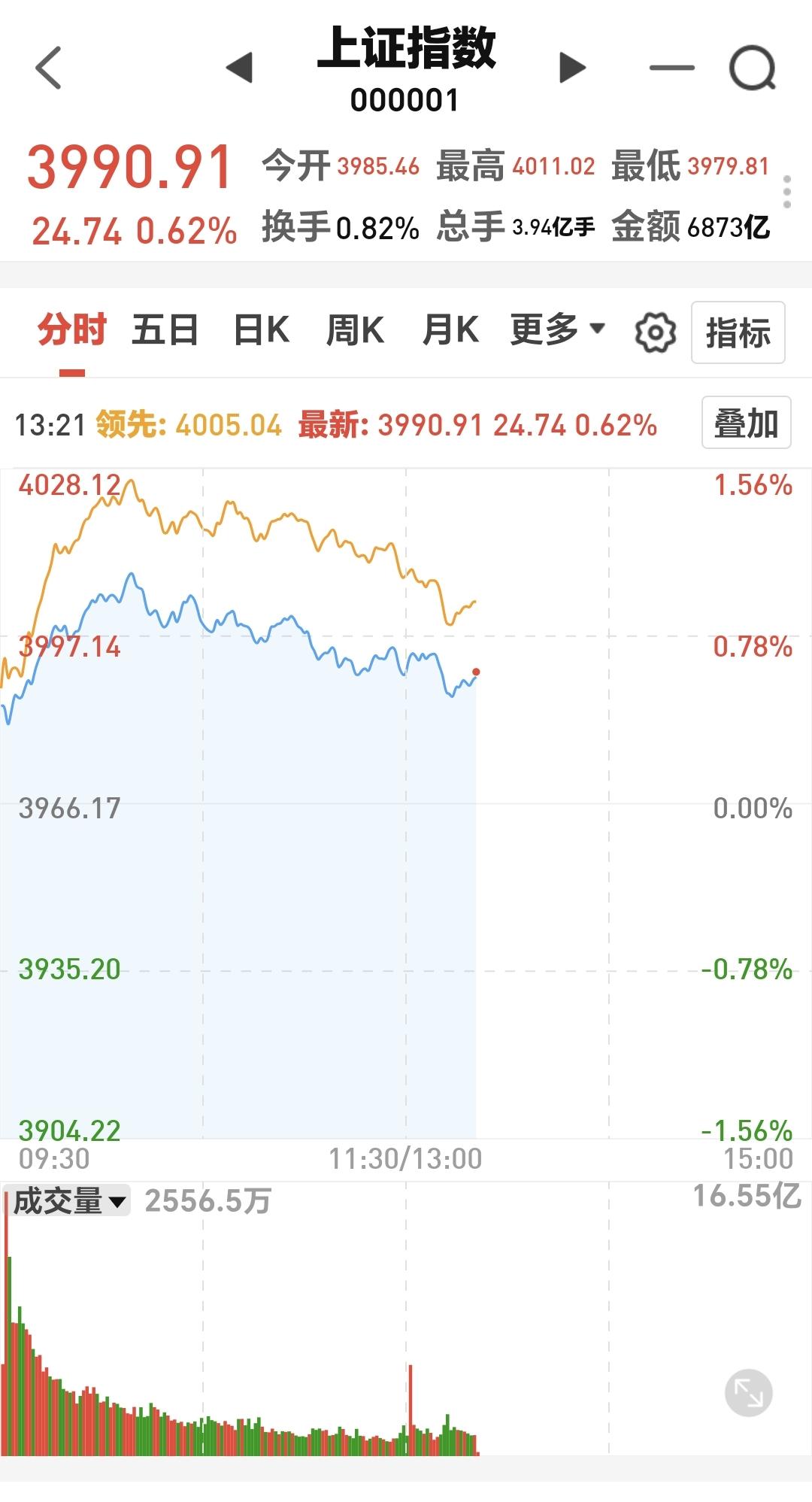 下午开盘以后,指数小幅度震荡,震荡的幅度很小,创业板指上涨了3.22%,盘中点位3430点上证指数上涨了0.61%,盘中点位3990点。