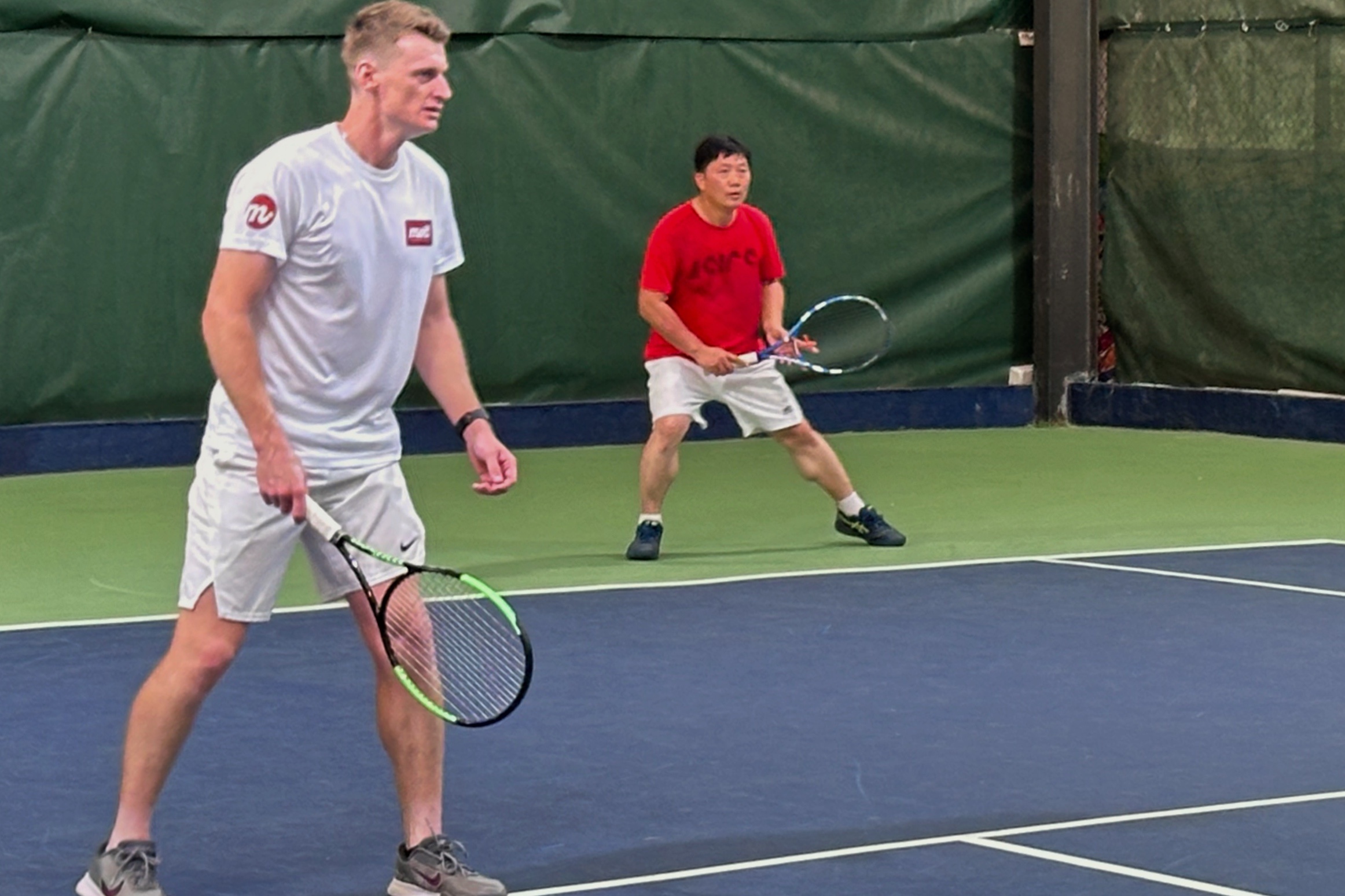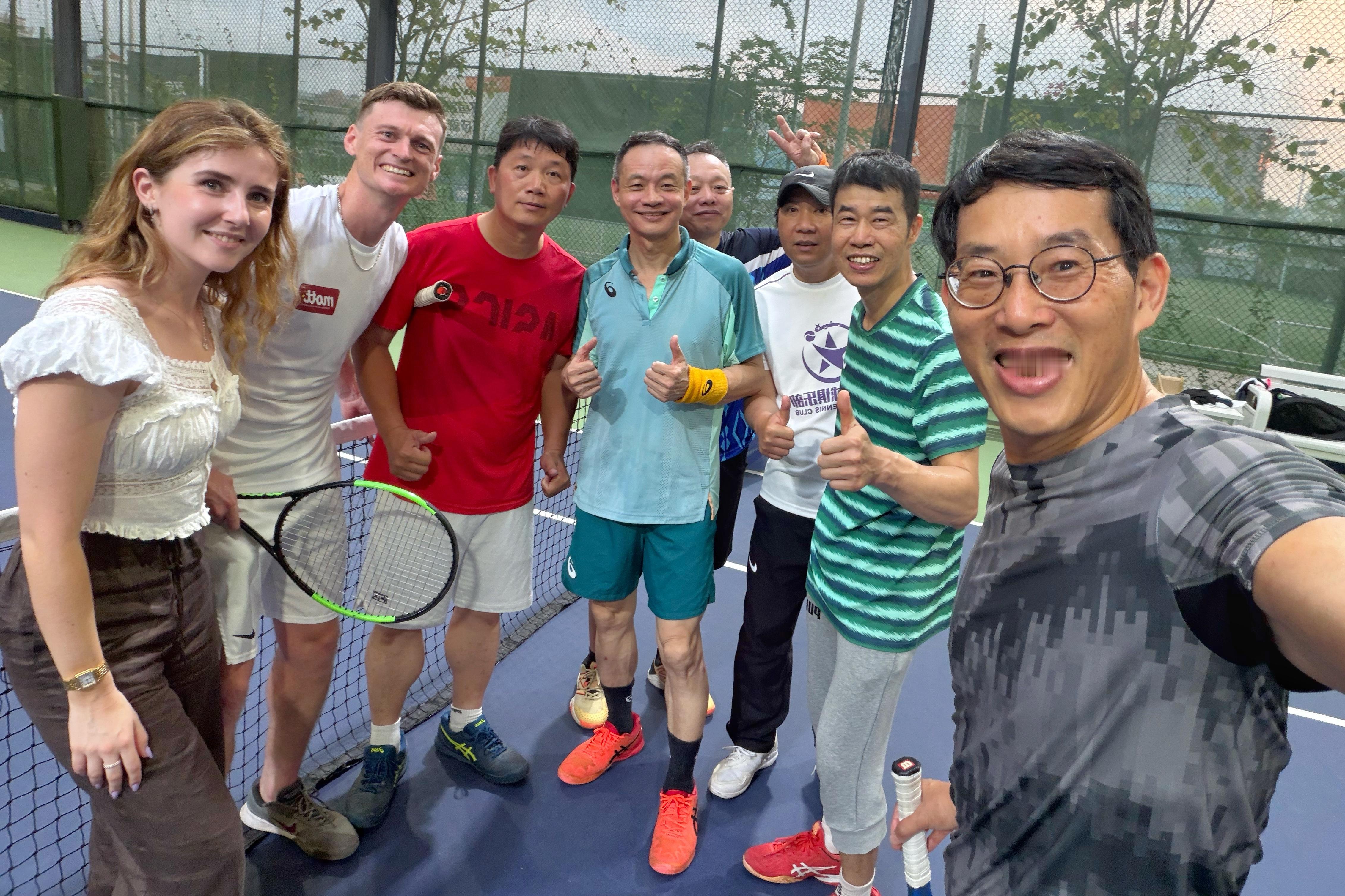 说说我这枚中国网球摄影师的澳大利亚网球搭子布莱克!感谢这一位曾经的澳网正赛选手昨天带我飞,并覆盖场地95%,帮助我双打战胜宿敌广州业余网球大师罗穗平/陈伟俭(香港)组合。赛后布莱克盛赞广州知名网球教练罗穗平教练双打技术特别包括放高球(Lob Ball)和截击(Volley)堪称大师级水平。