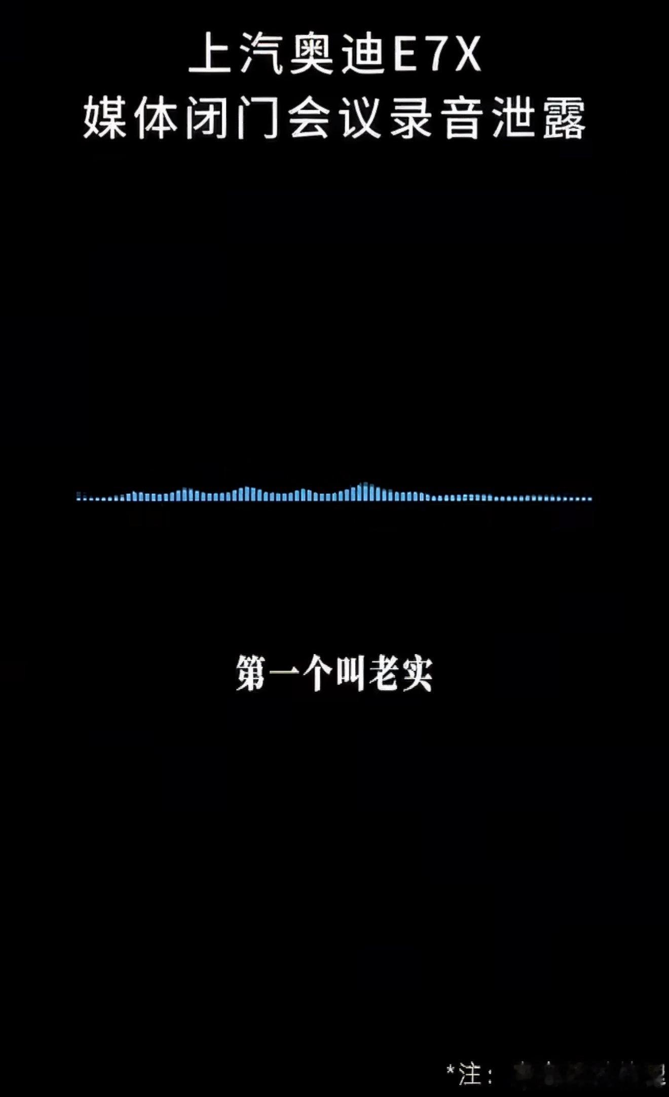 奥迪E7X媒体闭门沟通会泄密奥迪E7X媒体闭门会议 录音泄露内容主要是媒体说车企“老实”举了两个例子 E7X用了高滚阻但湿地性能更好的轮胎、用了采埃孚的空悬供应而没有用更便宜 供应链更及时的国产,总之就是把成本花在了消费者看不见的地儿这波内容 和泄密这事儿不新鲜可后面做法有点新鲜的 很难不想到是不是来了高人