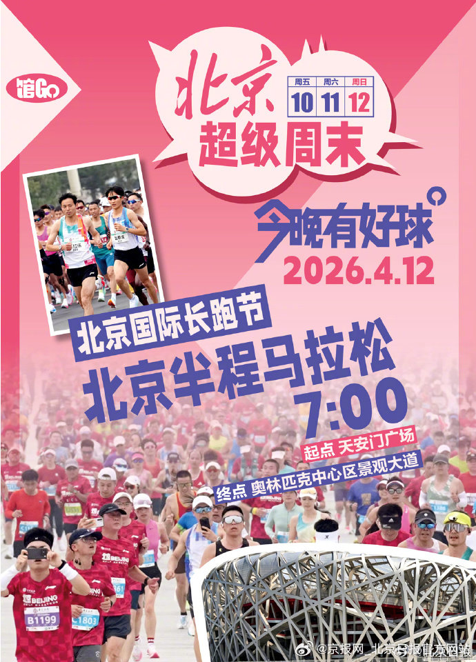 #北京超级周末将越来越多#【#北京超级周末看不过来#】#北京周末半马中超CBA演唱会# 4月10日至12日,北京将迎来连场文体盛宴,精彩赛事与精品文艺演出轮番上演,共同勾勒这个“超级周末”的热闹图景,让市民与游客沉浸式感受双奥之城的活力与温度。