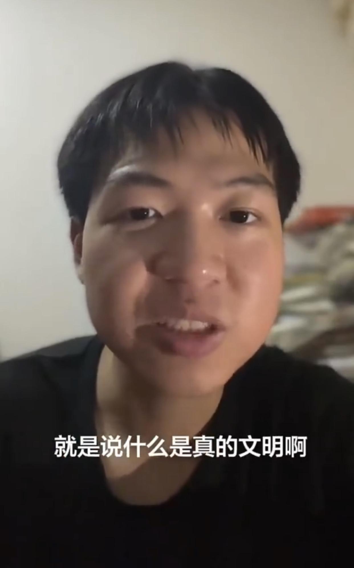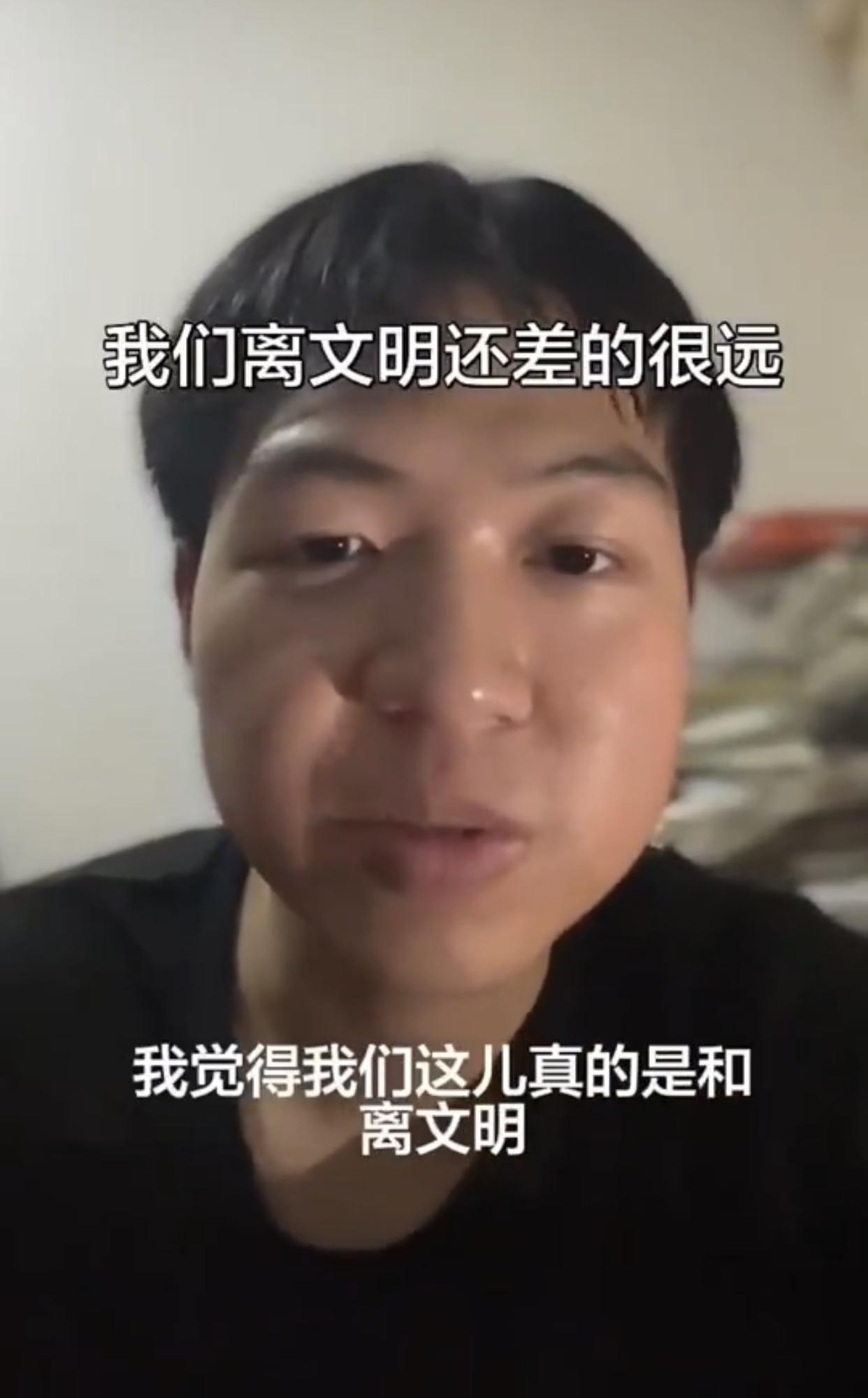 有一名国内男子表示:他觉得“我们”这儿很多时候真的是离文明还是有一点远啊,为什么