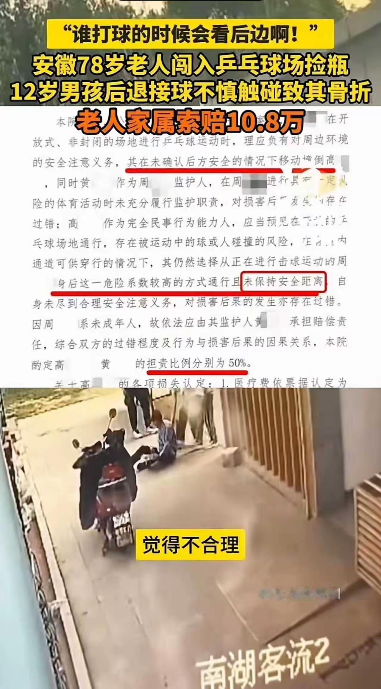 安徽铜陵,12岁孩子在公园打球,后退接球时撞倒了一位捡瓶子的老人。老人骨折住院,家属索赔5万元。孩子家长怒吼:“球场是给人运动的,他非要往球场钻,凭啥要我们赔偿?” 一时间,全网吵翻了:到底是孩子该赔,还是老人自找?