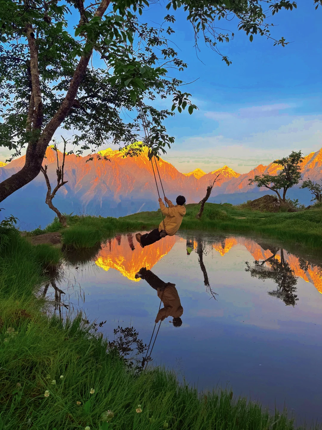 2️⃣龙华山:山顶秋千,爬山看日照金山真的很累,不过很值得。