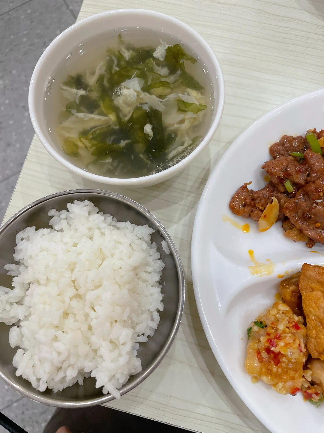 今天午餐吃多了,蒜香排骨真好吃(•؎ •),希望明天还有!