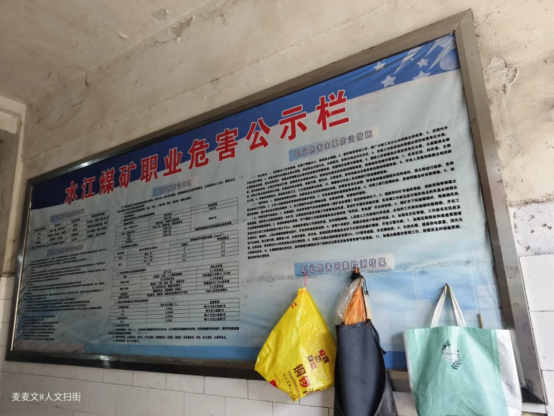 职工食堂的卷帘门早已落下,再也等不到下班的矿工;主井井口的“警钟长鸣”标语斑驳褪色,曾经刻在每个矿工心里的安全准则,成了墙上的旧痕;风险公示牌停留在2020年11月2日,那是煤矿谢幕前最后的印记;“水江煤矿员工”的红漆大字,在风雨里渐渐模糊,却永远刻在了水江人的记忆里。