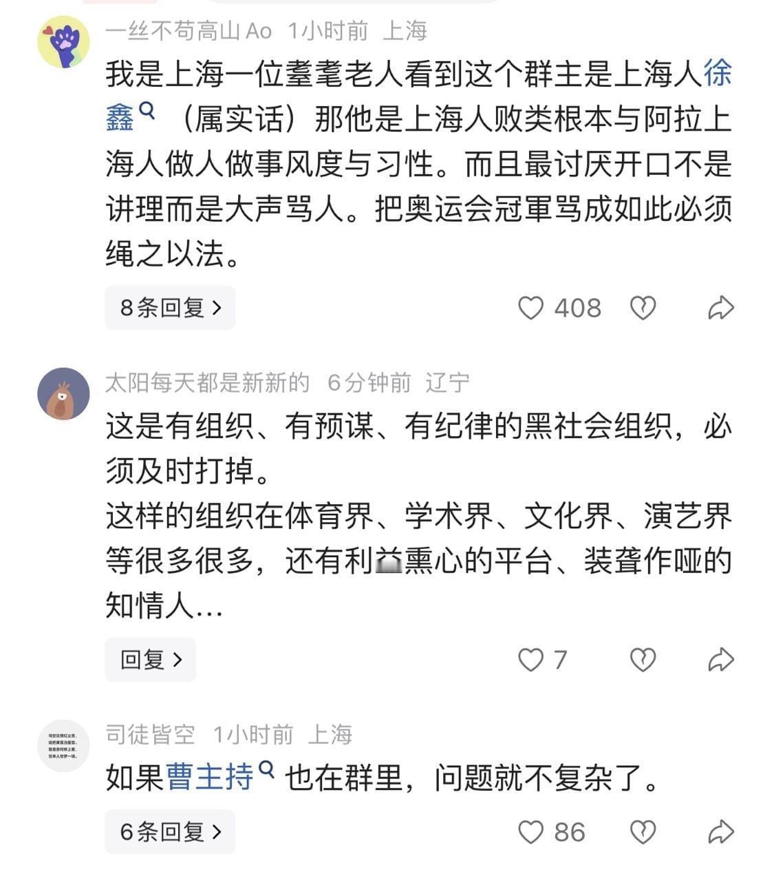 幸好,爱全红婵和王楚钦的,比黑他们的多得多,网络也不是法外之地,无论群主还是群成员,都将受到应有的处罚,不是退群销号就能逃脱的。