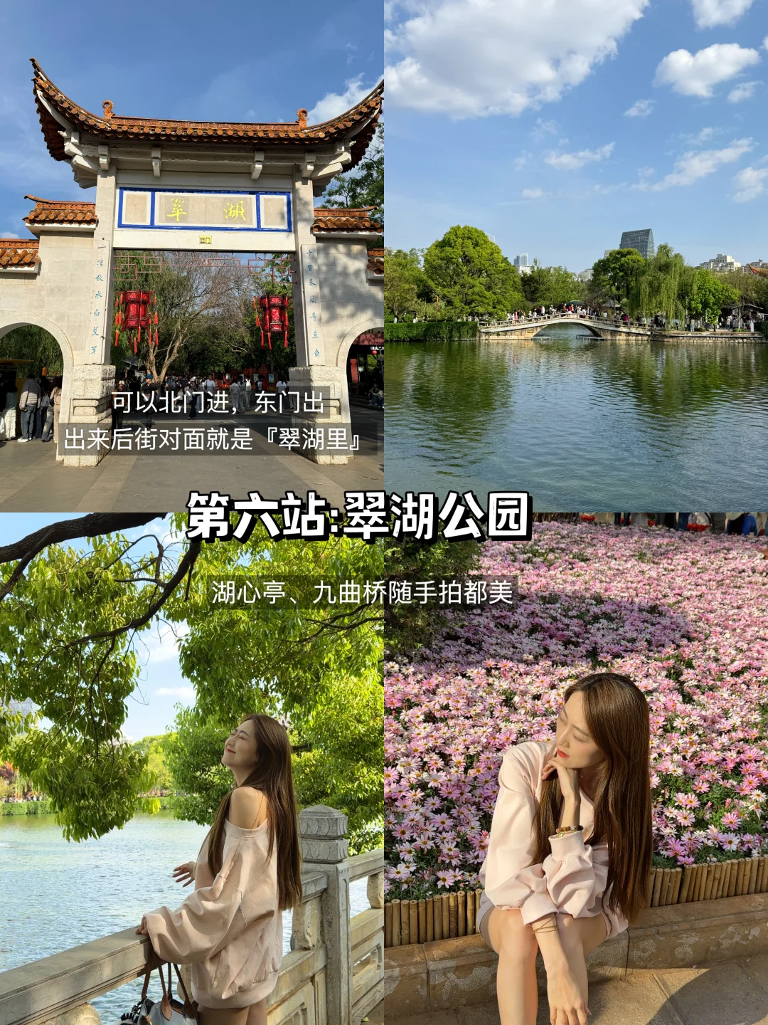 我是从北门进,从公园中心穿过📷即到昆明“绿心”,然后从东门出,湖心亭、九曲桥随手拍都好美~