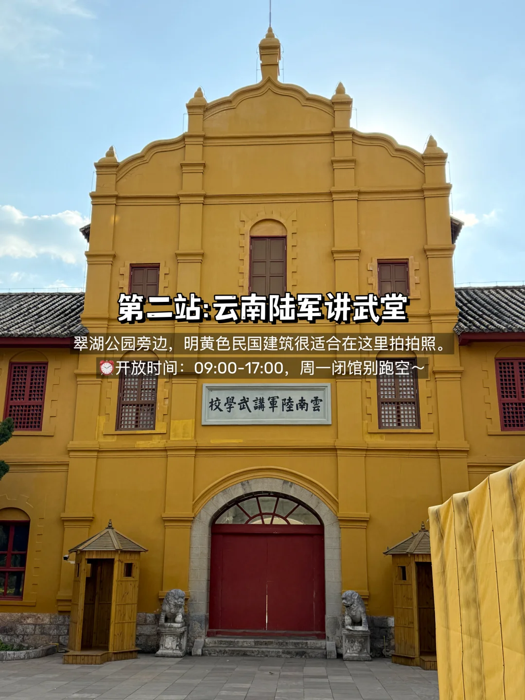 紧邻翠湖公园,明黄色民国建筑拍照很漂亮!免费参观但要提前预约~
